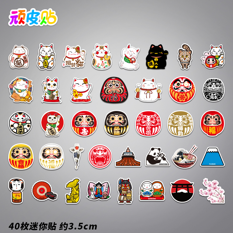 | nameOriginal | 40 pieces of mascot lucky cat small size mobile phone stickers laptop ipad water cup decorative stickers waterproof |