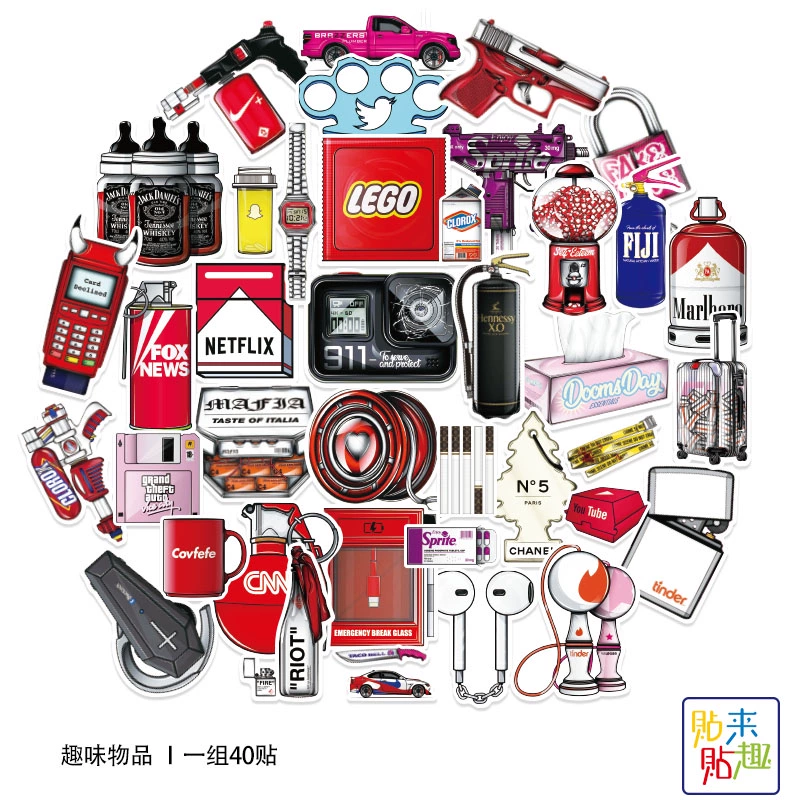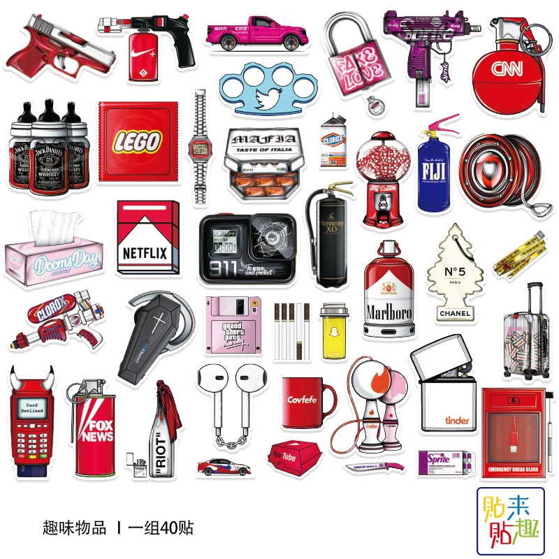 | nameOriginal | 40 pieces of trendy and interesting items, luggage, suitcase stickers, personalized trendy brand tablets, guitars and skateboard stickers |