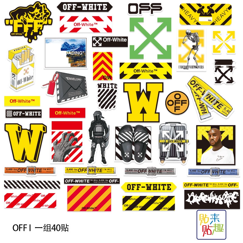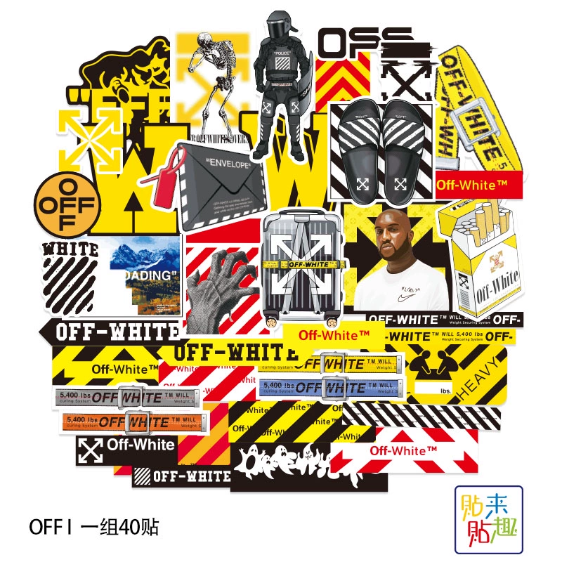 | nameOriginal | 40 Trendy Brand OFF Tablet Laptop Stickers Skateboard Guitar Motorcycle Helmet Water Cup Stickers Waterproof |