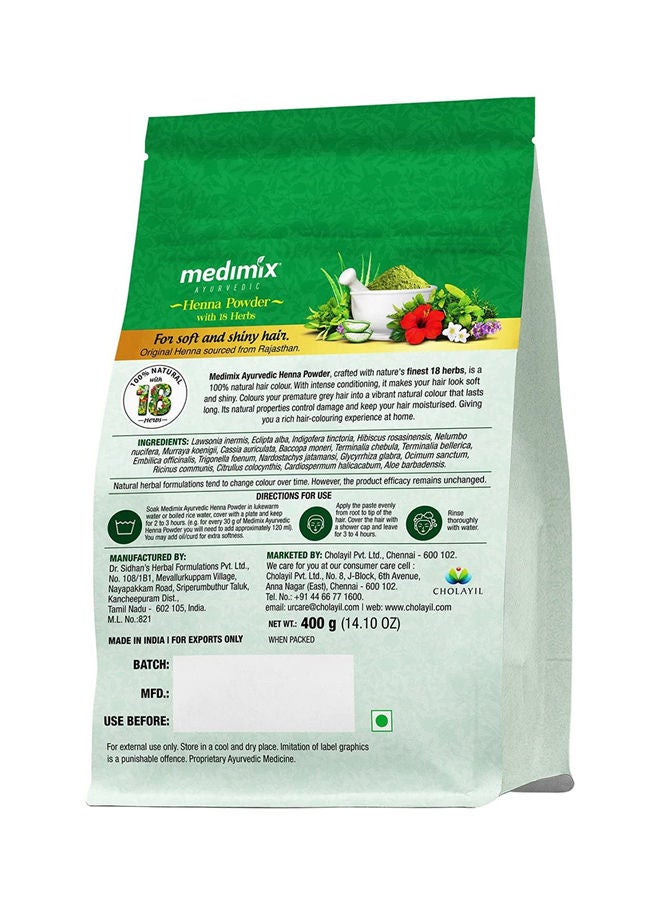 Introducing our Henna Powder 400gm, the perfect solution for all your hair coloring needs! Made from the finest quality henna leaves, this powder is 100% natural and free from harmful chemicals. Our Henna Powder 400gm is perfect for those who want to achieve a natural-looking hair color without damaging their hair. It is easy to use and can be mixed with water to create a paste that can be applied to your hair. With regular use, our Henna Powder 400gm can help improve the overall health of your hair, leaving it soft, shiny, and full of life. So why wait? Get your hands on our Henna Powder 400gm today and experience the magic of natural hair coloring!