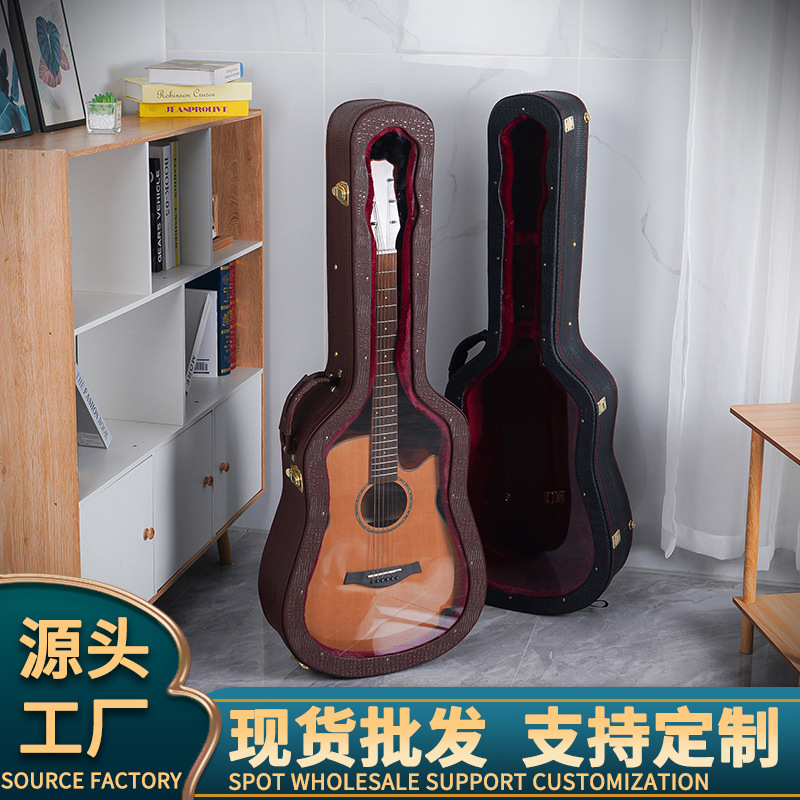 41-inch hard folk wooden guitar box transparent acrylic travel box portable anti-pressure waterproof anti-theft leather box