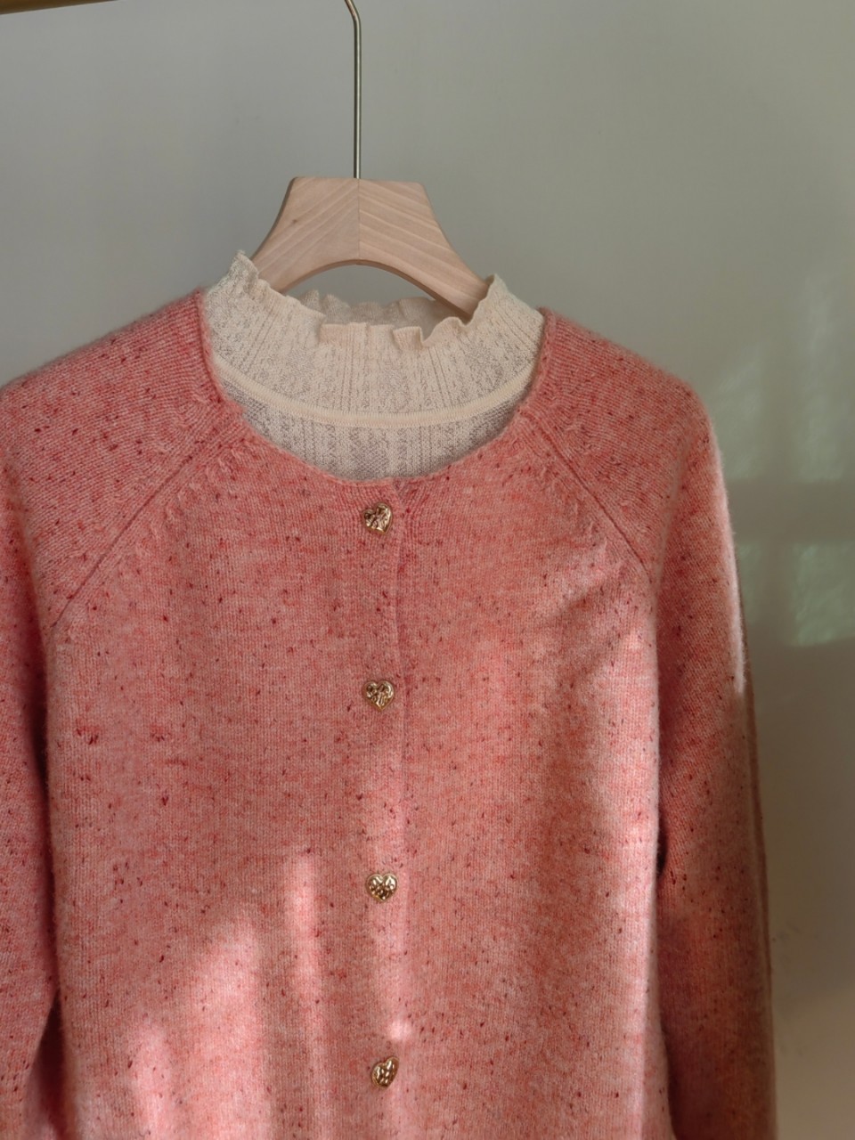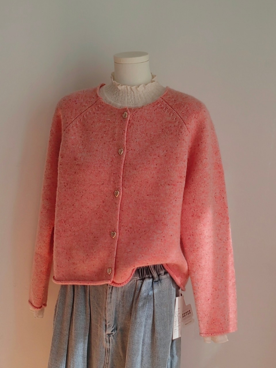 | nameOriginal | 430g thick woolen sweater full wool sweet cardigan love buckle M length 55 bust 104 shoulder sleeve 66 |