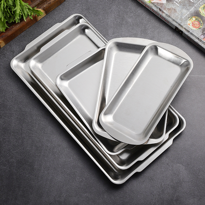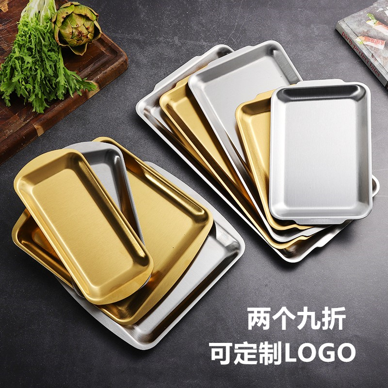 444Z Korean 304 stainless steel plate golden rectangular tray square plate commercial snack flat plate barbecue plate