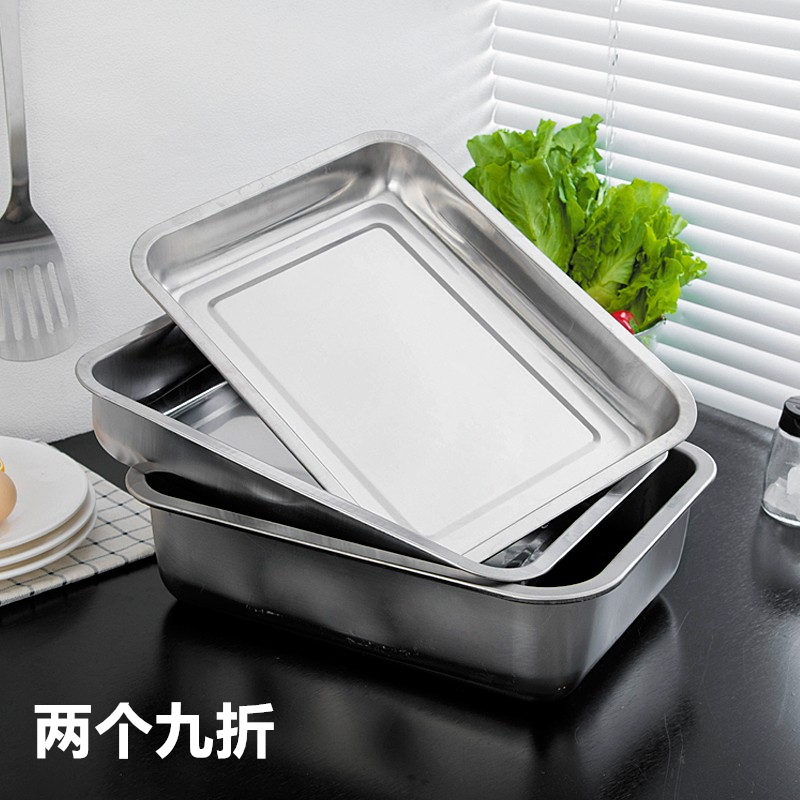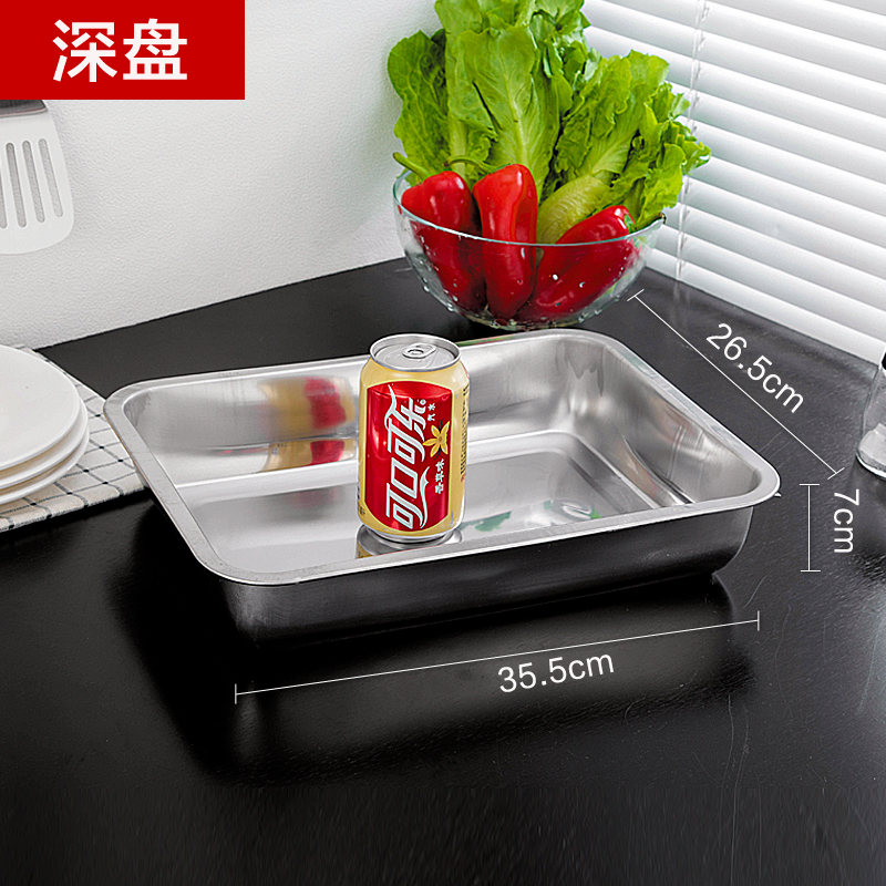 444Z tray with lid stainless steel square plate thickened grilled fish plate dinner plate commercial household iron plate rectangular
