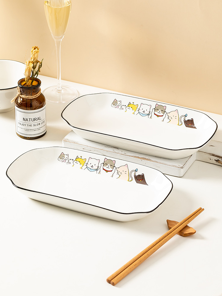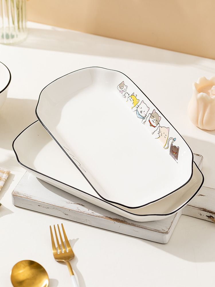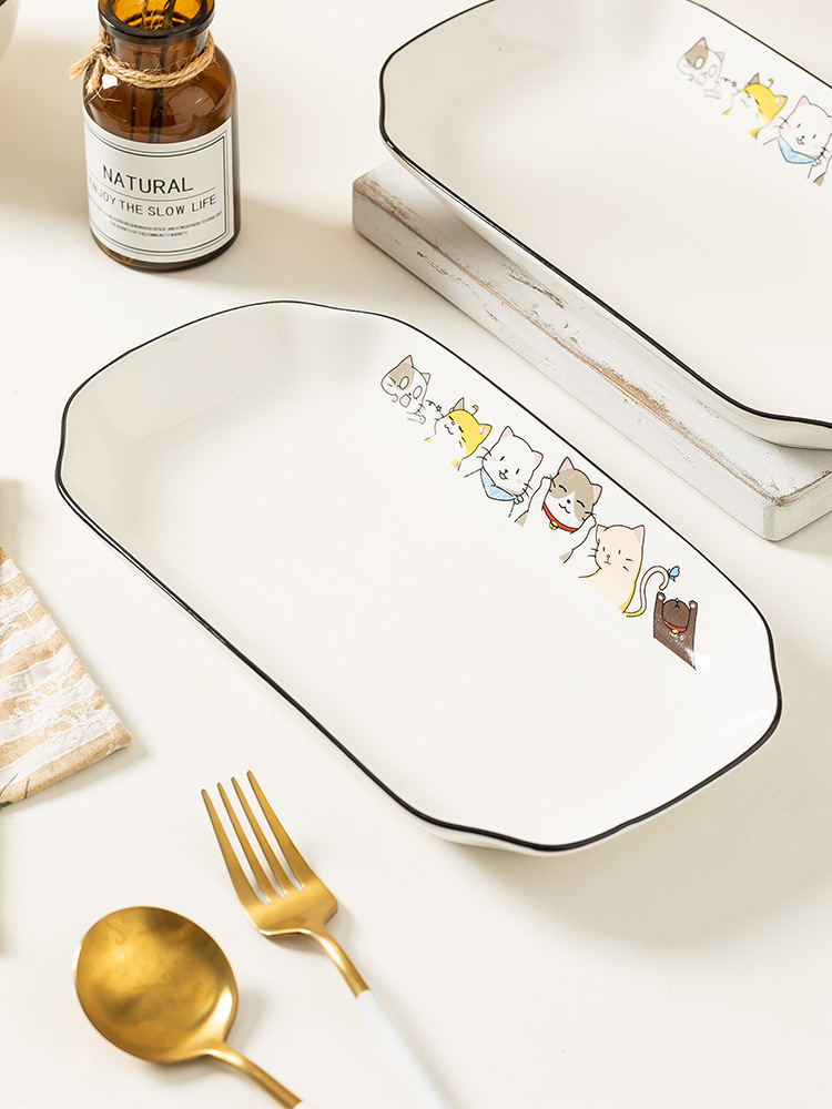 | nameOriginal | 444Z wholesale cat household ceramic large fish dish cute personality fruit plate steamfish dish simple rectangular |