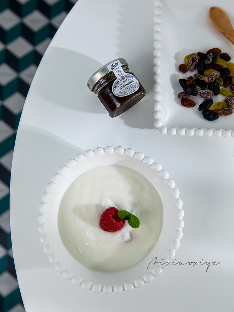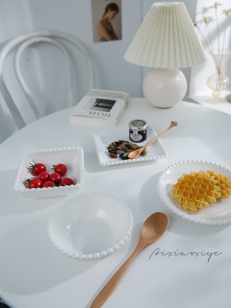 444Z wholesale Chi Xiaoxi ins white bead ceramic European Western food plate bowl cake dessert restaurant round plate