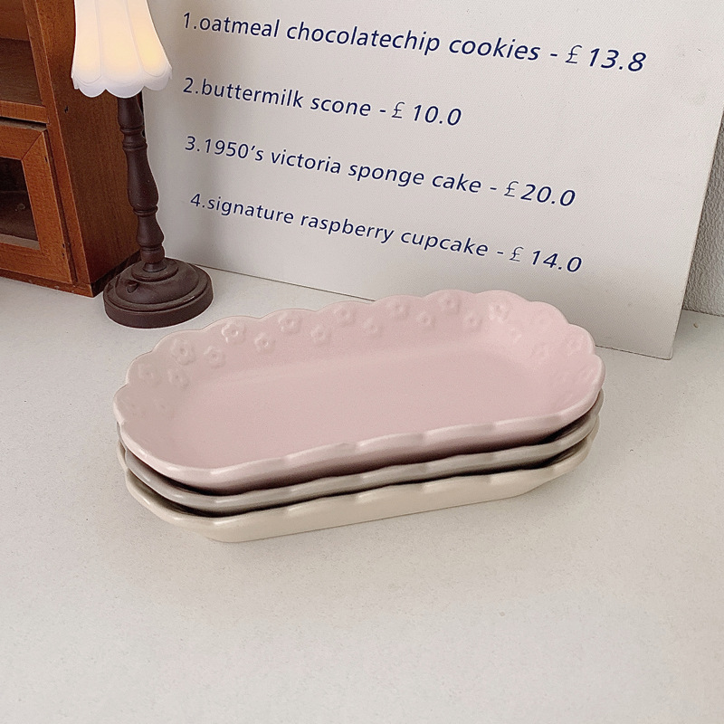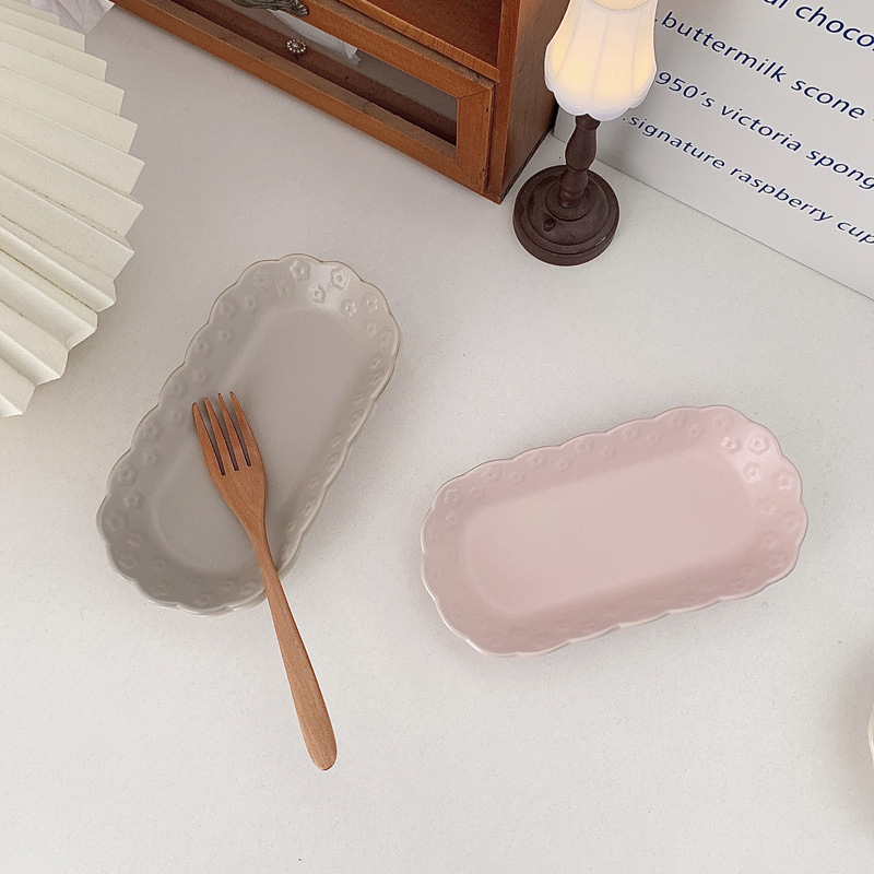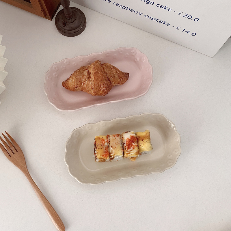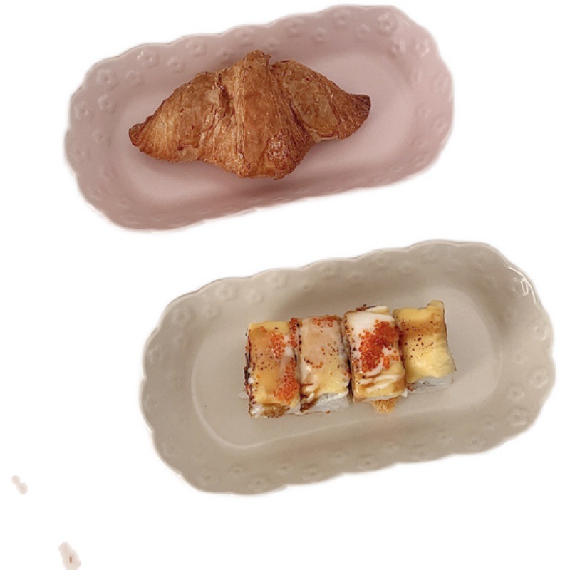 | nameOriginal | 444Z wholesale ins irregular embossed flower sushi plate small long plate ceramic fruit afternoon tea snack plate meal |