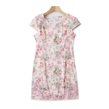 4501 Printed Cheongsam Skirt Summer Pullover Retro Slimming Temperament Slimming Mid-Length Hip-covering Skirt Women's Skirt Foreign Trade