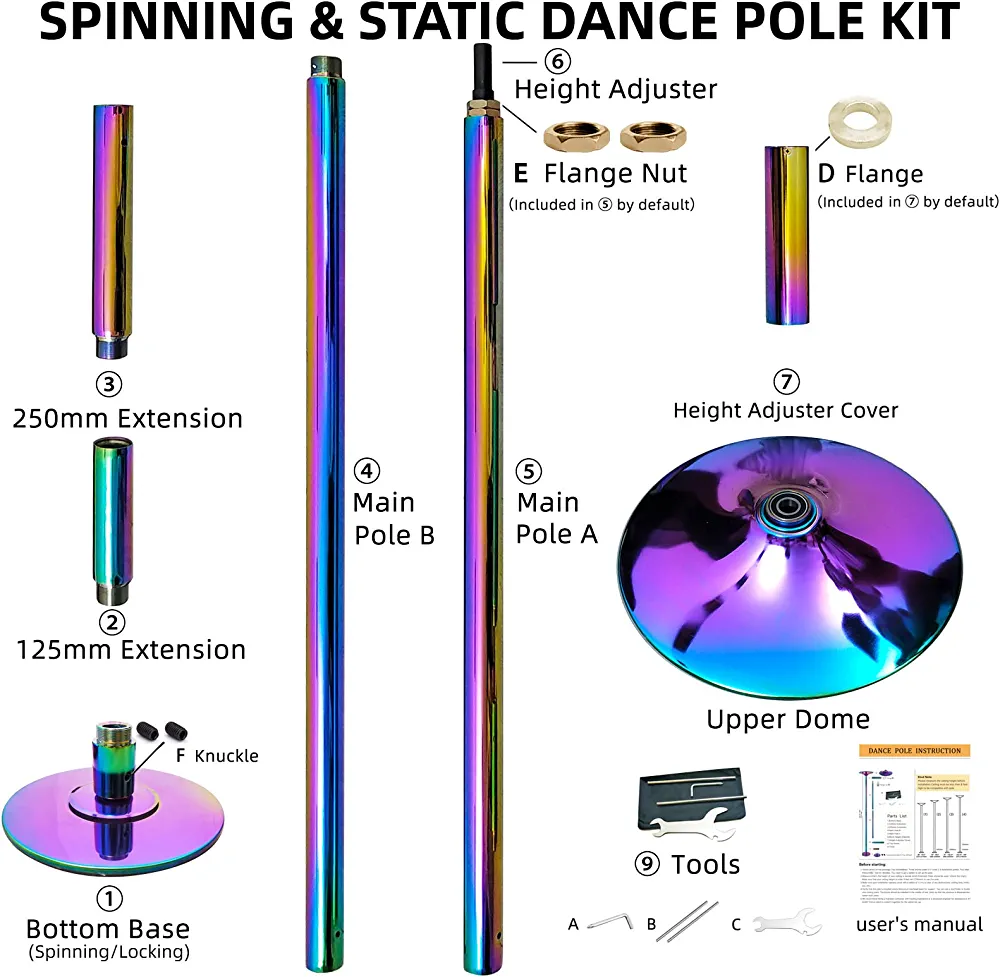 | nameOriginal | Portable Spinning Dance Pole Kit, 45mm Dia 360 Pole Dance Pipe for Beginner Fitness Exercise Club Party Pub Home(Can be used with extension tubes) |