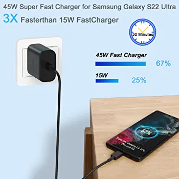 | nameOriginal | Einlike 45W Super Fast Charger Type C for Samsung Galaxy s22 Ultra, S21 Ultra, S21 FE, S20 Plus, Note 20/10, Galaxy Tab S7/S7+/S8/S8+/S8 Ultra, with PPS 45 Watt Charger Block Black |