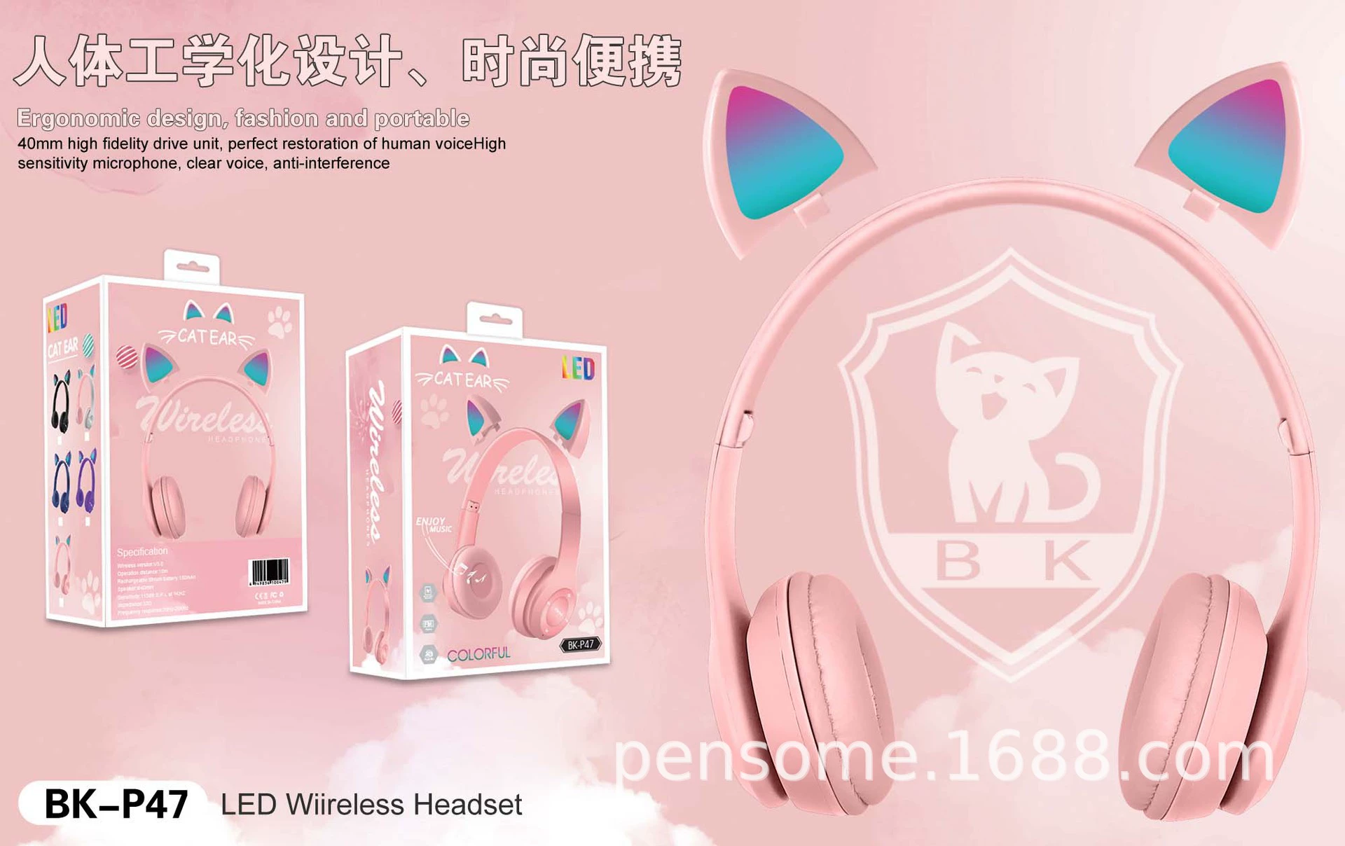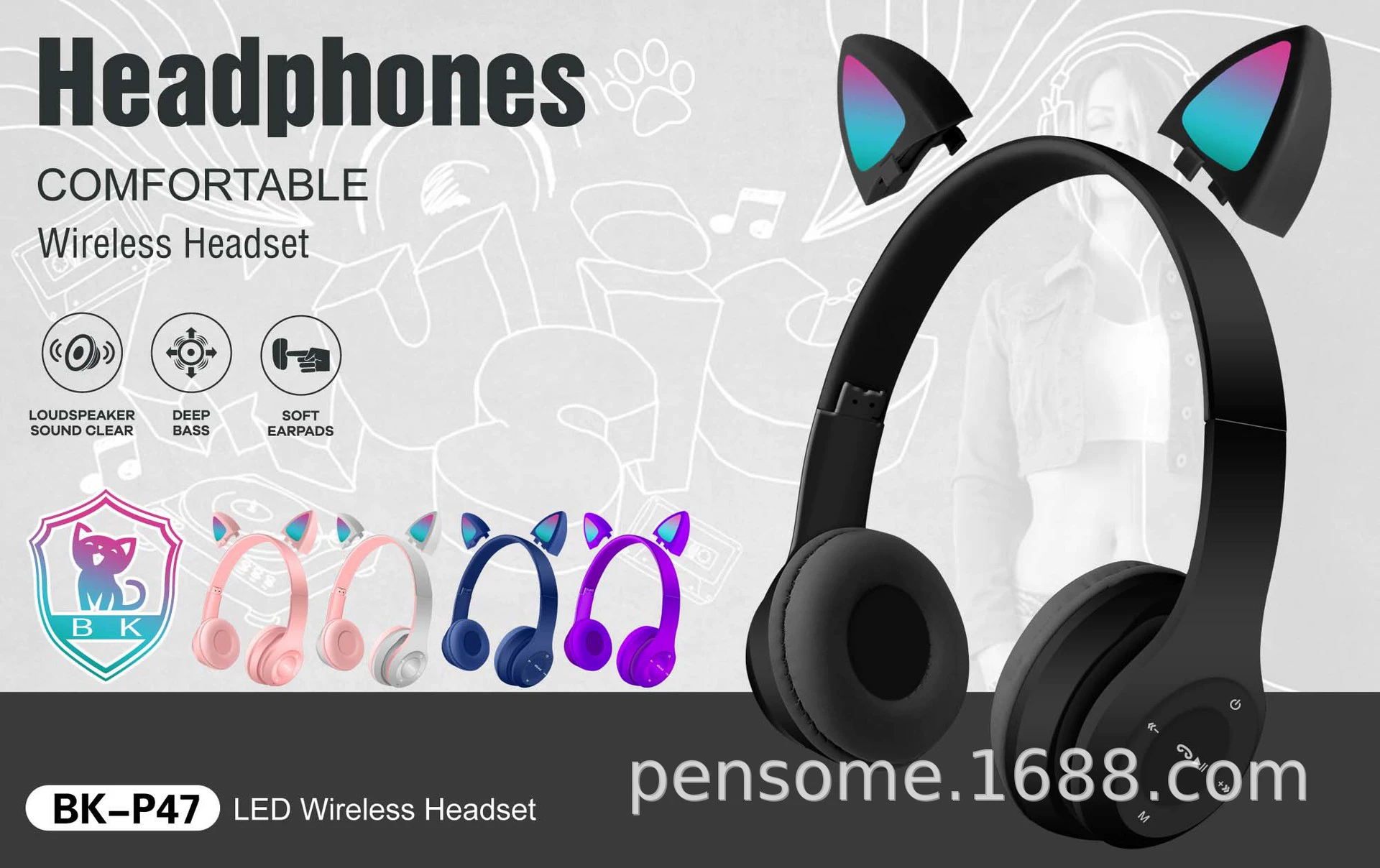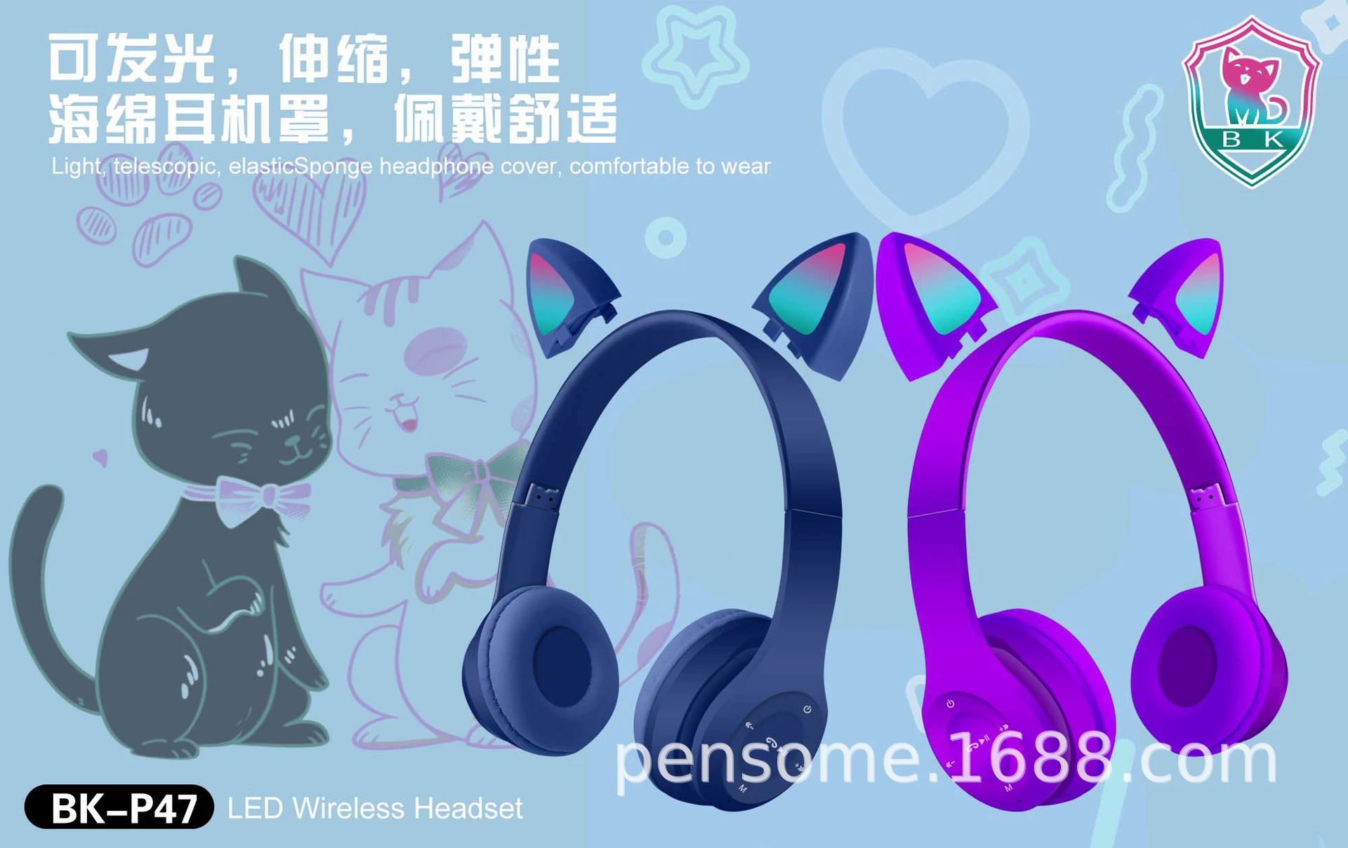 | nameOriginal | -47 Mobile Detachable Luminous Cat Ears Head-Mounted Wireless Bluetooth Headset Cartoon Luminous Computer Headphones |
