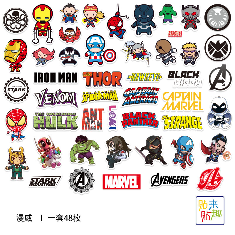 | nameOriginal | 48 pieces of Marvel hero cartoon small size stickers, personalized cute tablet laptop mobile phone helmet stickers |