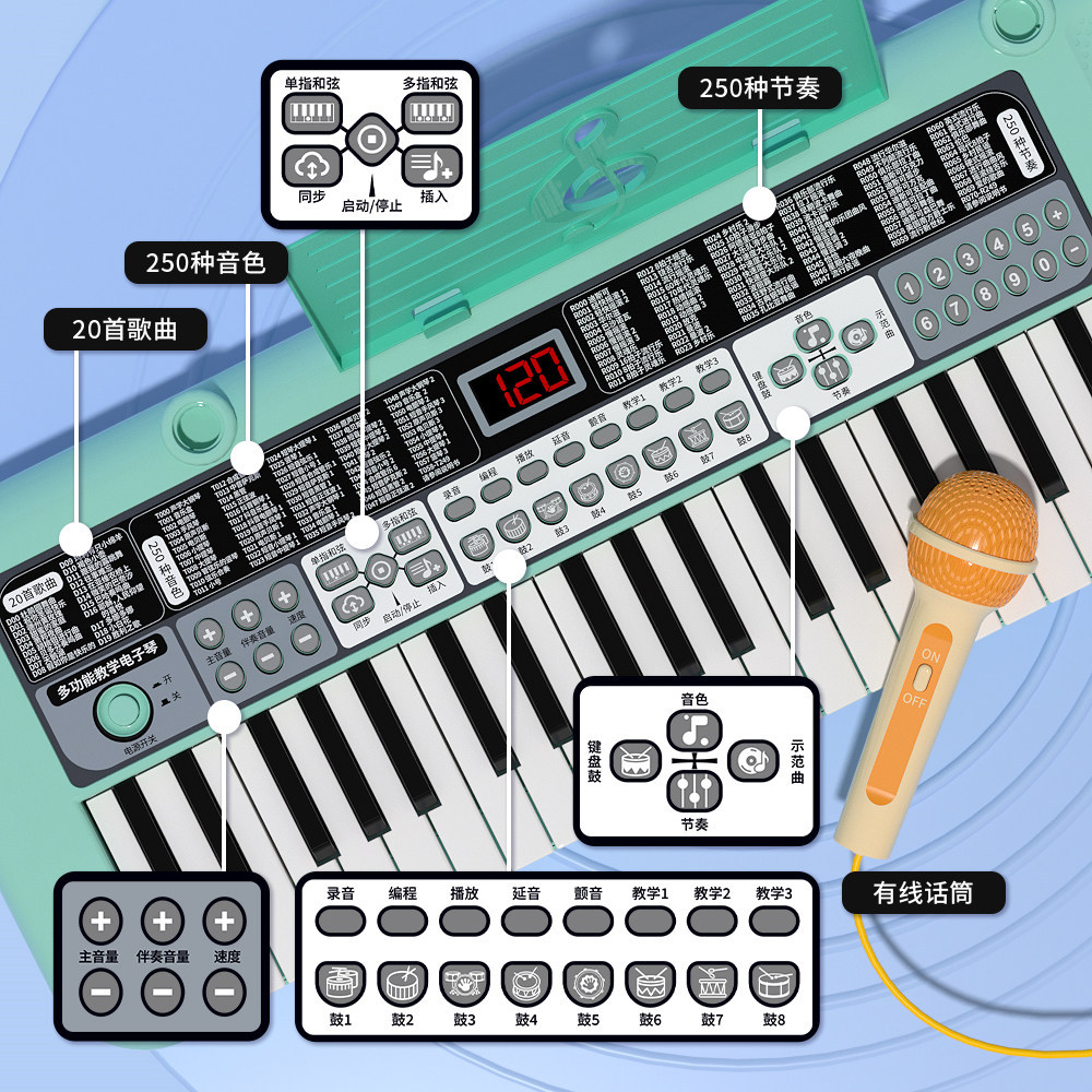 49 key multifunctional music electronic organ with microphone dual power supply adjustable children can play electronic organ toy