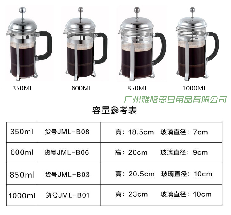 4ah French Pressure Pot Coffee Pot Tea Glass Filter Pot Manual Coffee Pot Household Tea Pot Glass Pot