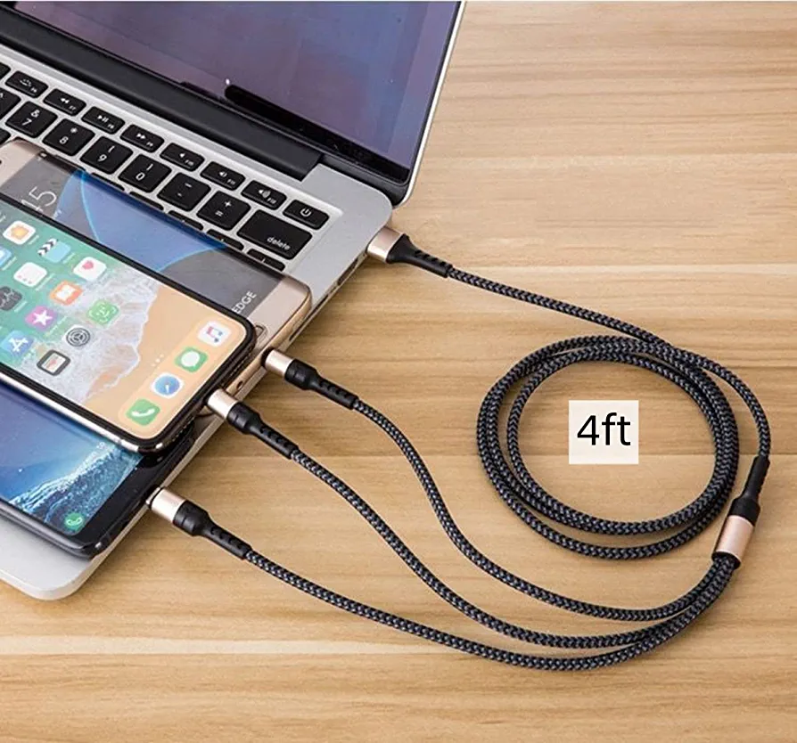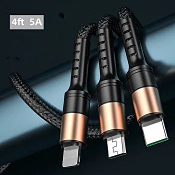 | nameOriginal | HULPPRE 4ft Universal Charging Cable 3 in 1 Nylon Braided USB Cable 5A Fast Multiple Charger Cable Compatible With iPhone/Samsung Galaxy/Huawei/iPad and More |