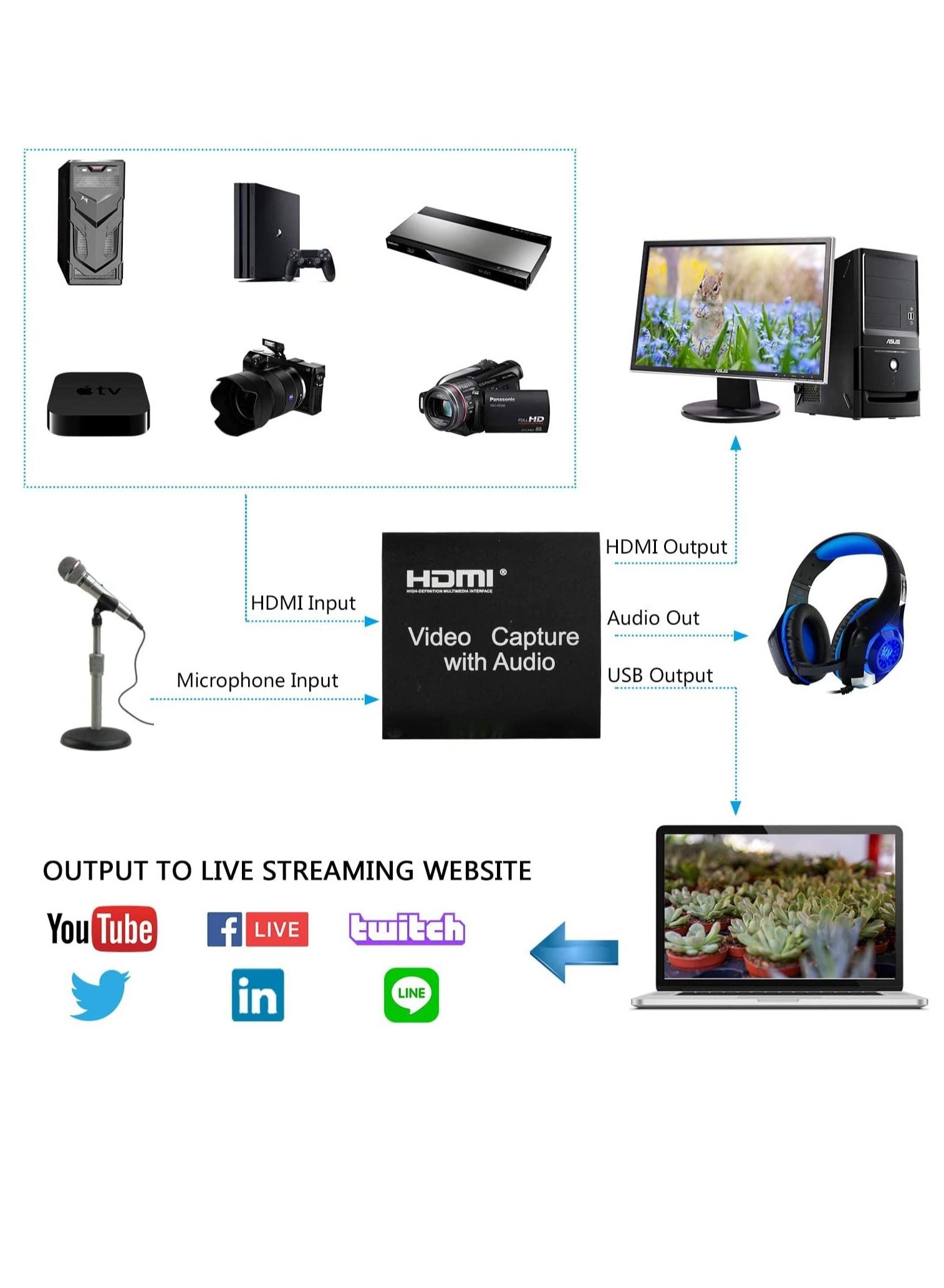 The Video Capture Card 4K HDMI Video Capture Device with Loop Out is the perfect tool for anyone looking to elevate their live streaming, broadcasting, or video conference game. With its Full HD 1080P Game Capture Video Recorder, you can capture every detail of your content in stunning clarity. The loop out feature allows you to simultaneously display your content on multiple screens, making it ideal for presentations or group viewings. This device is also capable of capturing 4K HDMI video, ensuring that your content is future-proofed and ready for the latest technology. Whether you’re a content creator, gamer, or business professional, the Video Capture Card 4K HDMI Video Capture Device with Loop Out is the ultimate tool for capturing and sharing your content with the world.