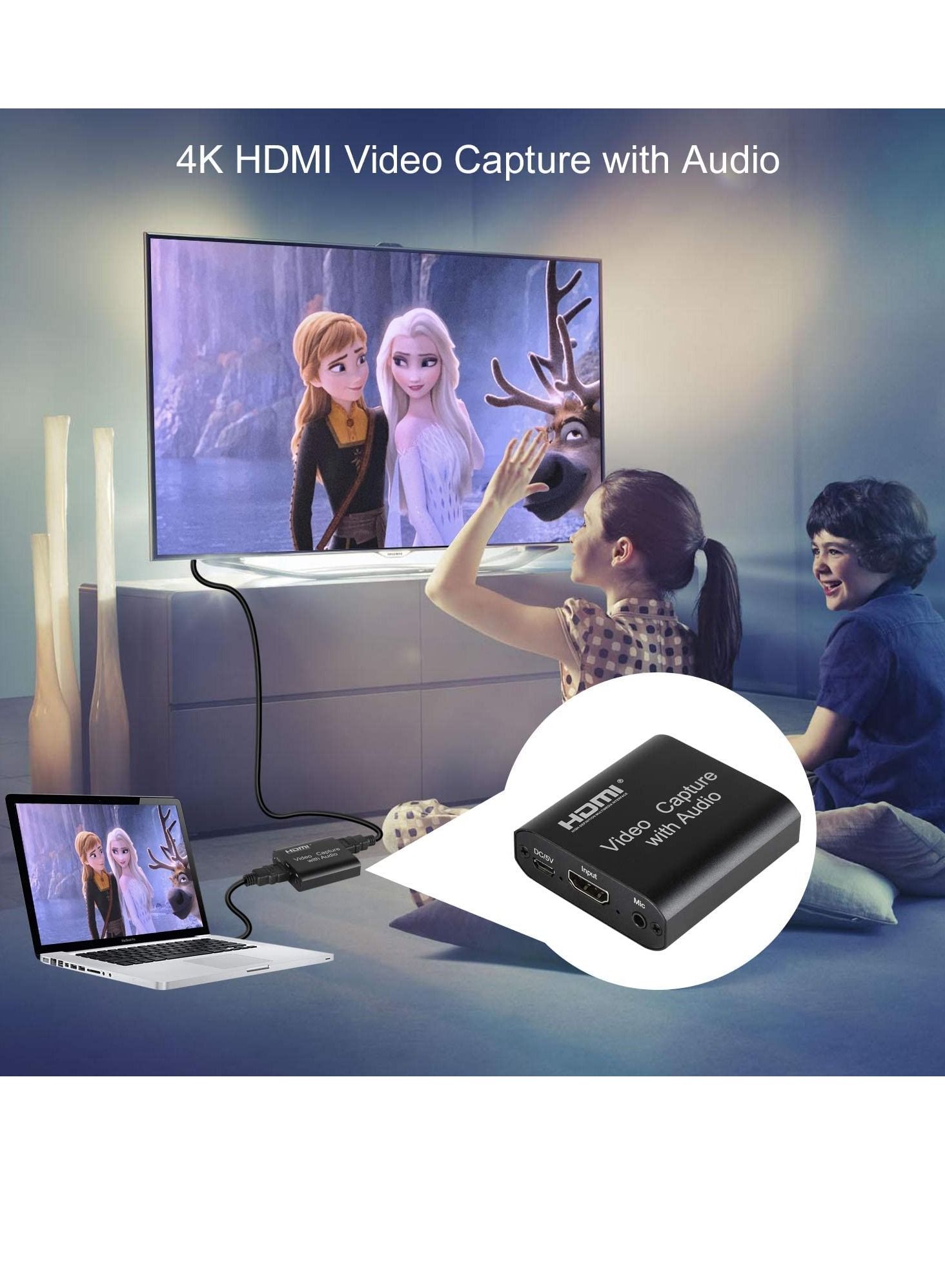 Video Capture Card 4K HDMI Video Capture Device with Loop Out Full HD 1080P Game Capture Video Recorder for Live Streaming Broadcasting or Video Conference