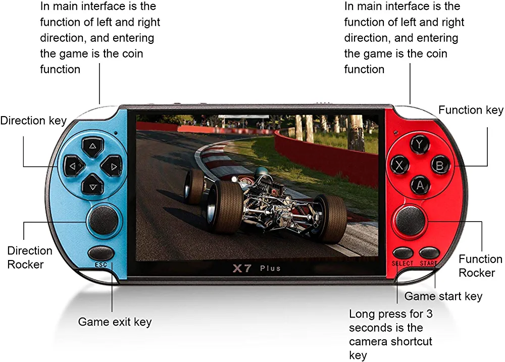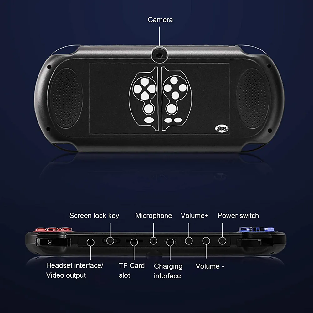 5.1″ X7 Plus Handheld Game Console with Double Rocker, 8GB Memory, 1000 Built-in Games, and MP5 Game Controller.