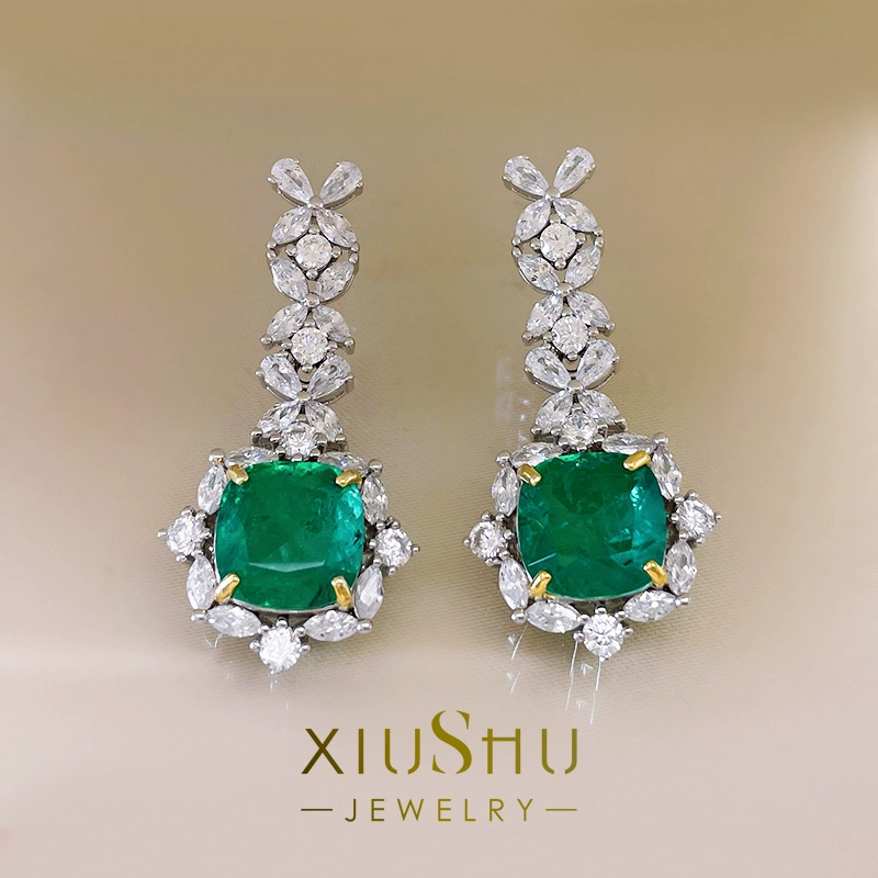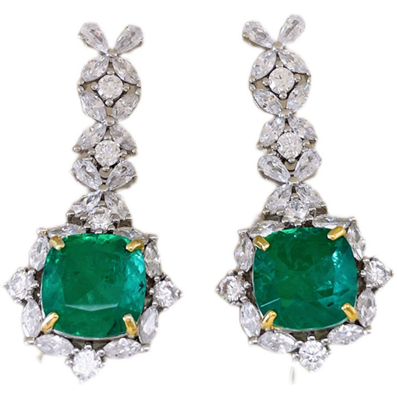 | nameOriginal | 5 carat artificial Colombian emerald earrings 925 sterling silver gold plated gemstone earrings long E051 |