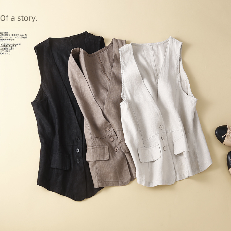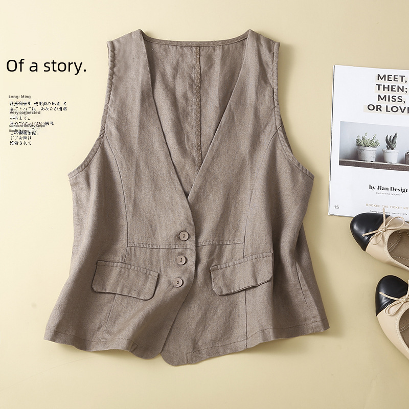 | nameOriginal | 5 Color Cotton and Linen Vest Sleeveless Top New V-Neck Casual Sleeveless Vest Thin Outer Wearing Vest for Women |