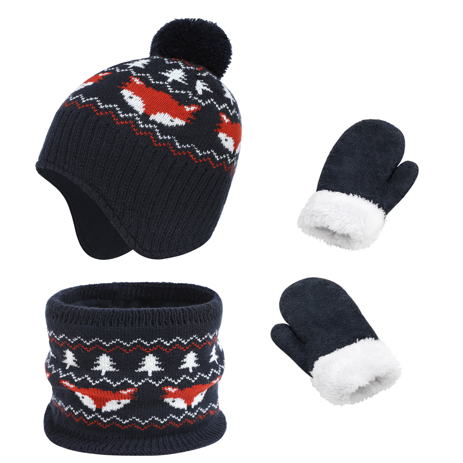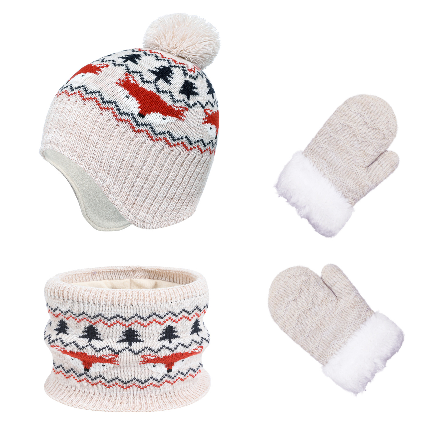 | nameOriginal | 5 color in stock children cute fox fur ball hat scarf gloves 3 suit winter hat fleece-lined cross-border e-commerce |