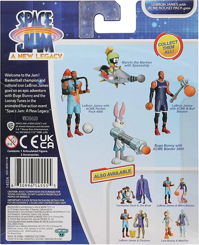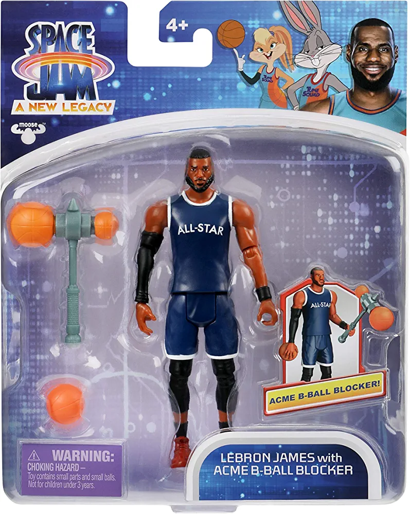 | nameOriginal | Moose Toys Space Jam: A New Legacy – Baller Action Figure – 5" Lebron James with Acme B-Ball Blocker |