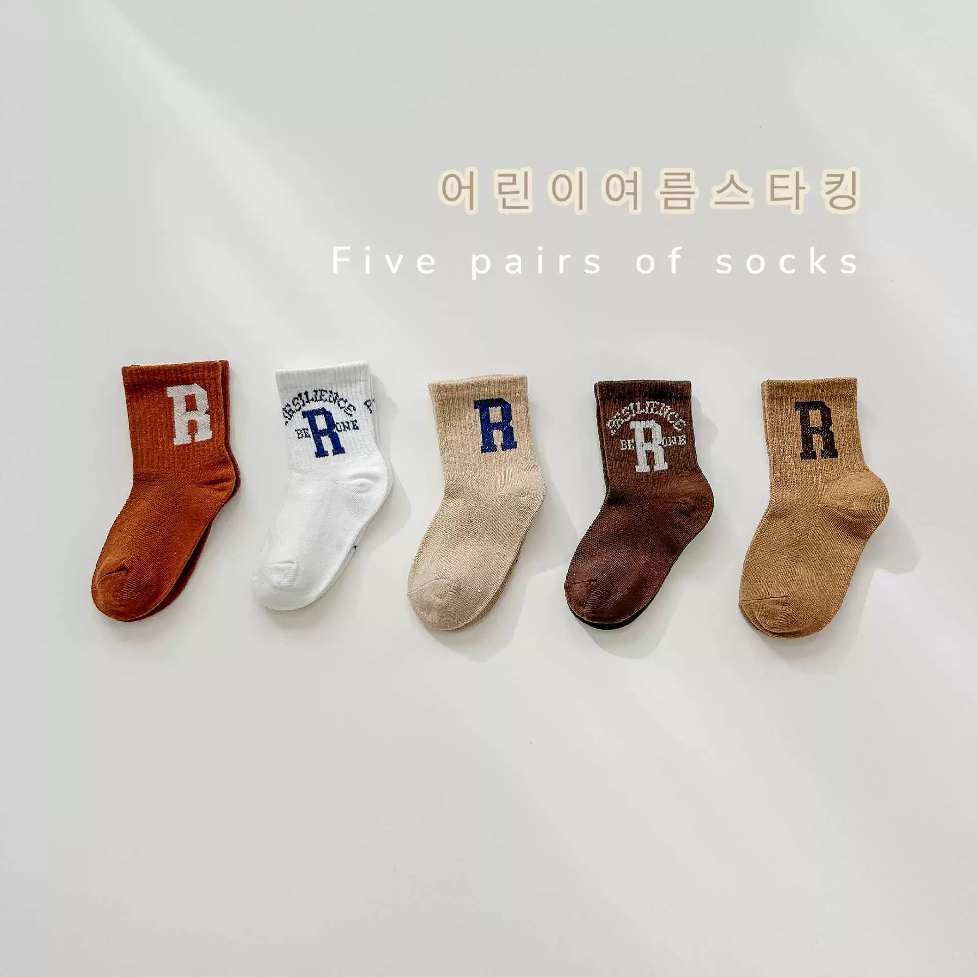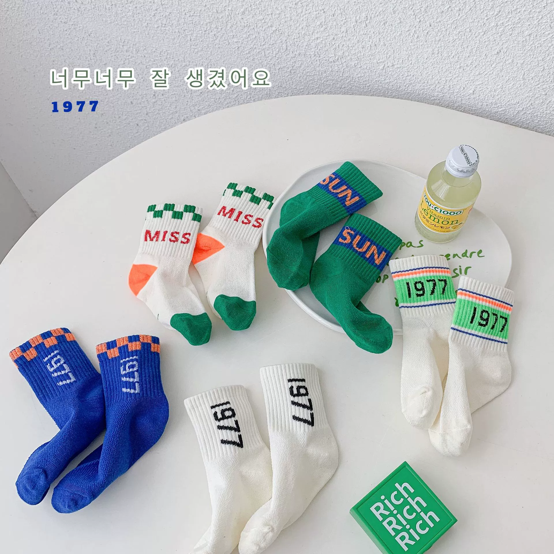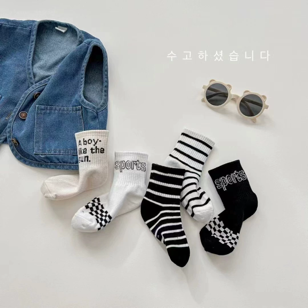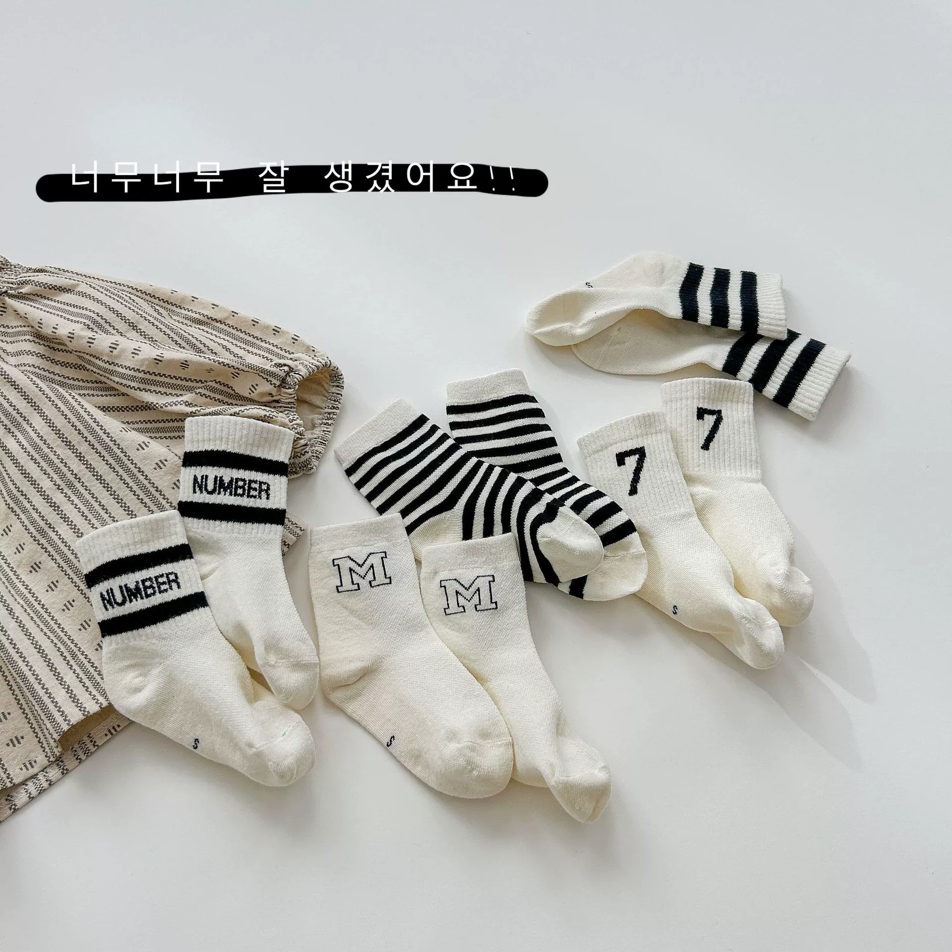 | nameOriginal | 5 pairs of ins trendy striped spring, autumn and winter children's socks |