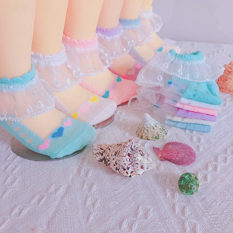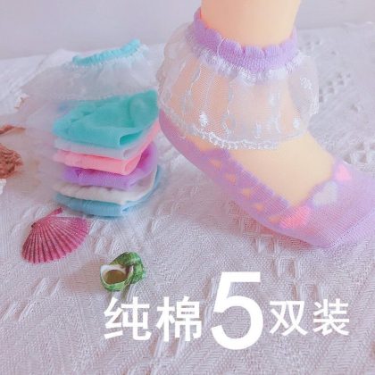 | nameOriginal | 5 pairs of seamless boneless children's socks girls summer ultra-thin crystal lace socks transparent princess socks |