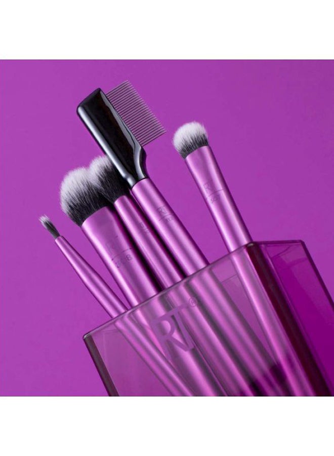 5-Piece Enhanced Eye Brush With Stand Purple/Black