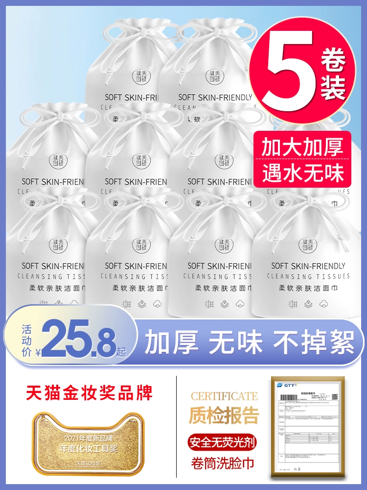 | nameOriginal | 5 rolls, Jianmei Chuangyan facial cleansing towel disposable roll type facial cleansing tissue pure cotton thickened cotton soft towel |
