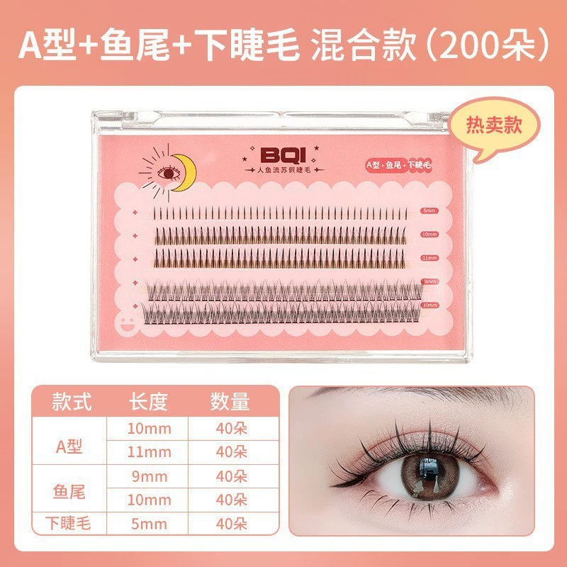 | nameOriginal | 5 rows of BQI comic little devil false eyelashes with thick natural simulation single cluster segmented fish eye tail hair extension |