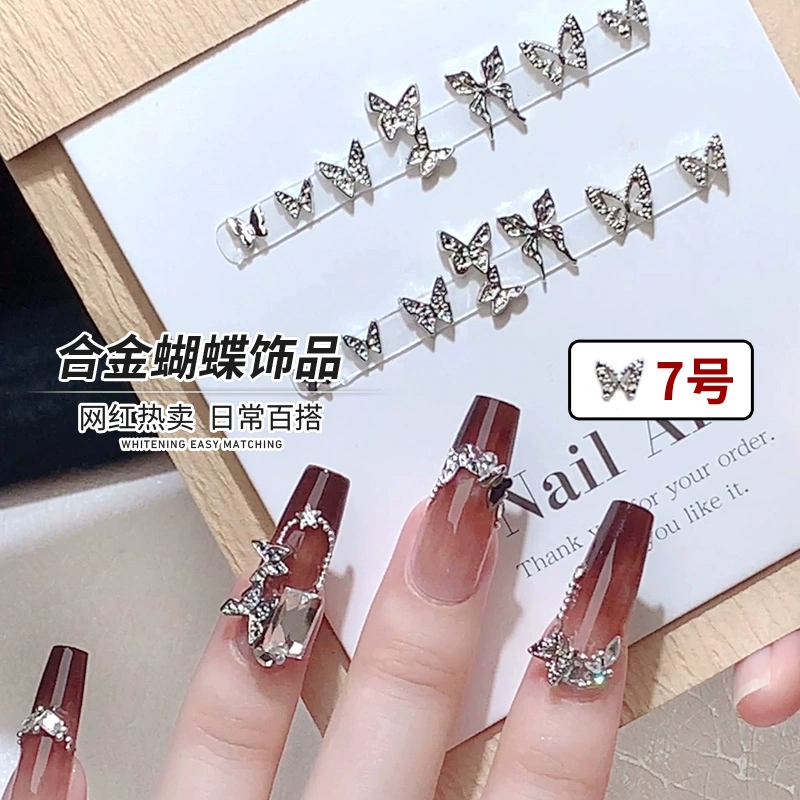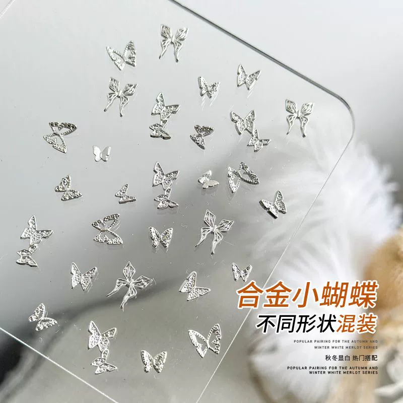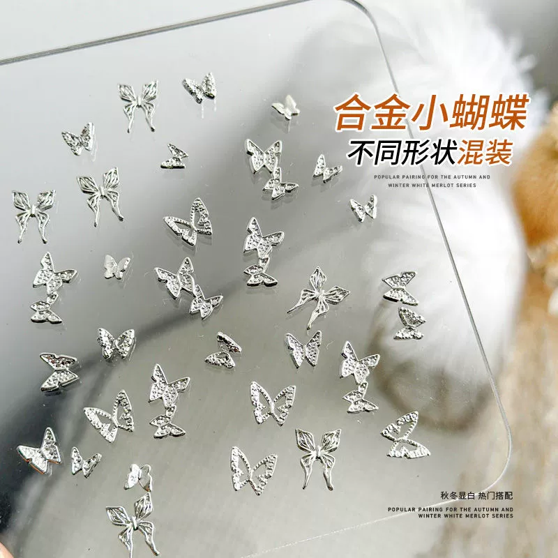| nameOriginal | 50 Internet celebrity alloy butterfly nail art jewelry, simple hollow silver small butterfly, two-section butterfly nail decoration diamond |