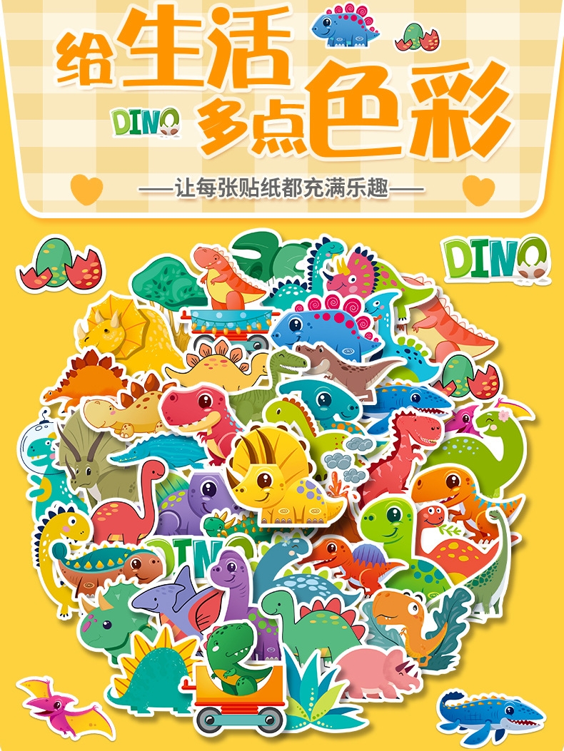 50 Q-version cute little dinosaur stickers, cute cartoon luggage, scooters, computer helmets, children's water cup stickers
