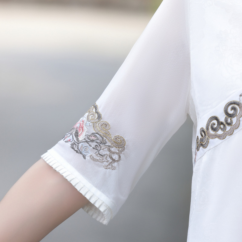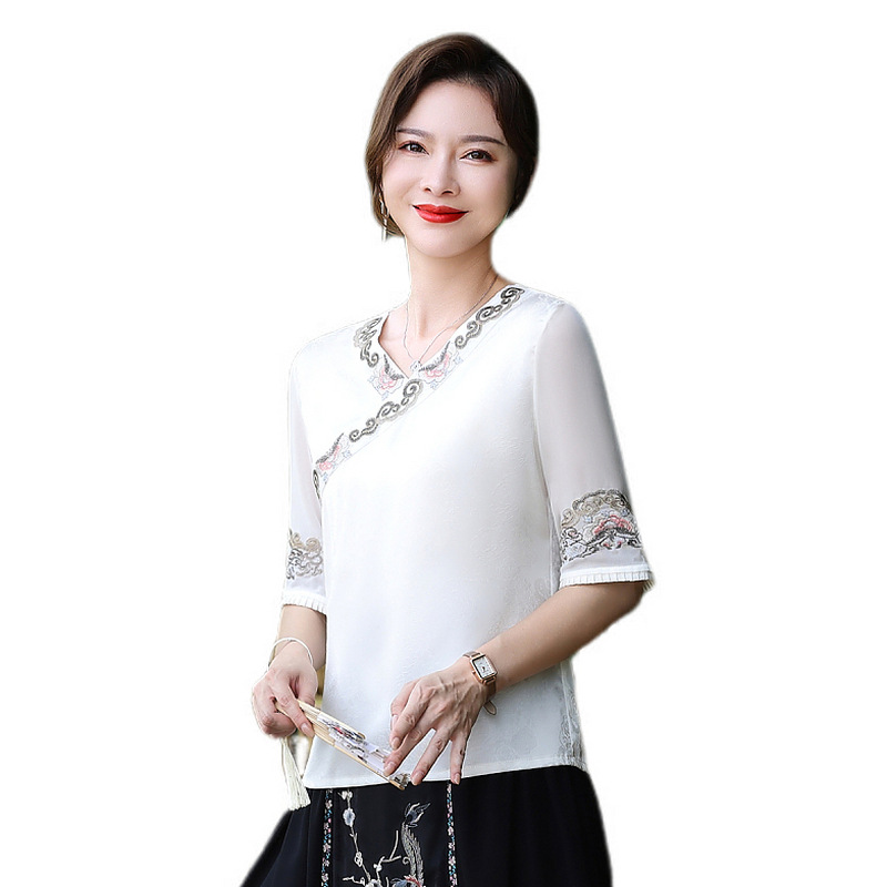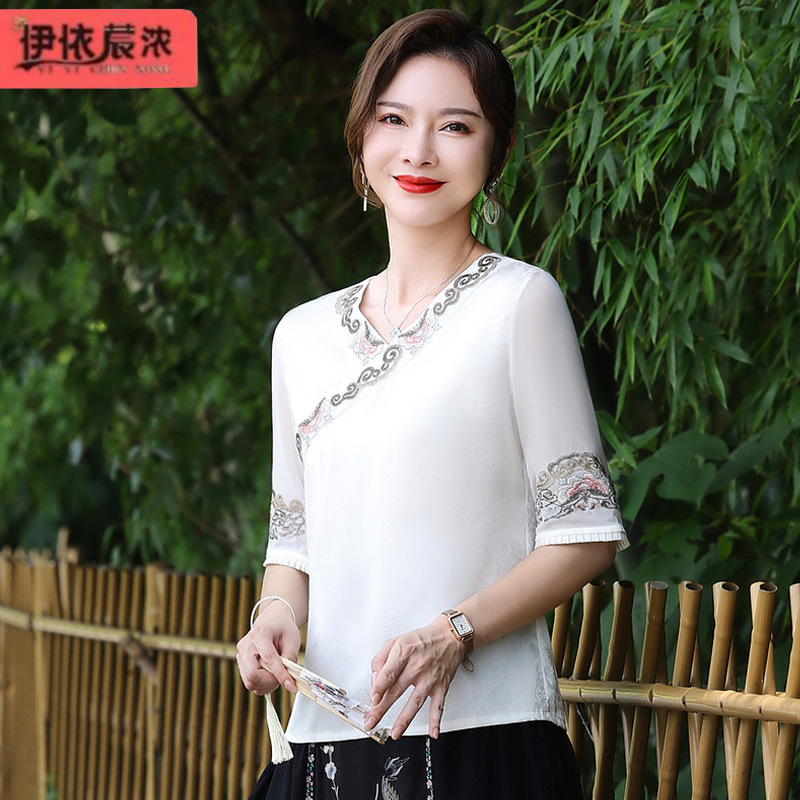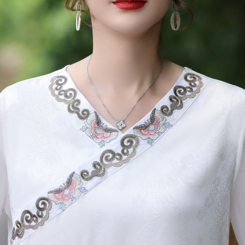 | nameOriginal | 50-year-old mother summer dress temperament national style short-sleeved T-shirt top 60-year-old women's V-neck embroidered cool shirt for women |