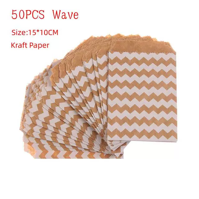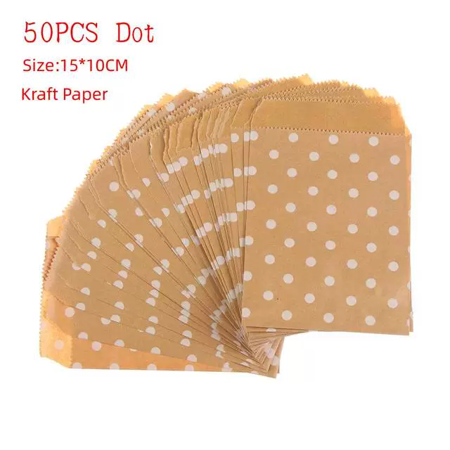 | nameOriginal | 50pcs 15*10CM Wave Dot Kraft Paper Candy Biscuit Bags Packin |