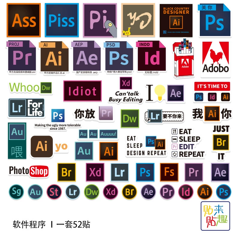 | nameOriginal | 52 pieces of programmer IT software stickers, suitcase stickers, personalized laptop ipad mobile phone stickers, waterproof |