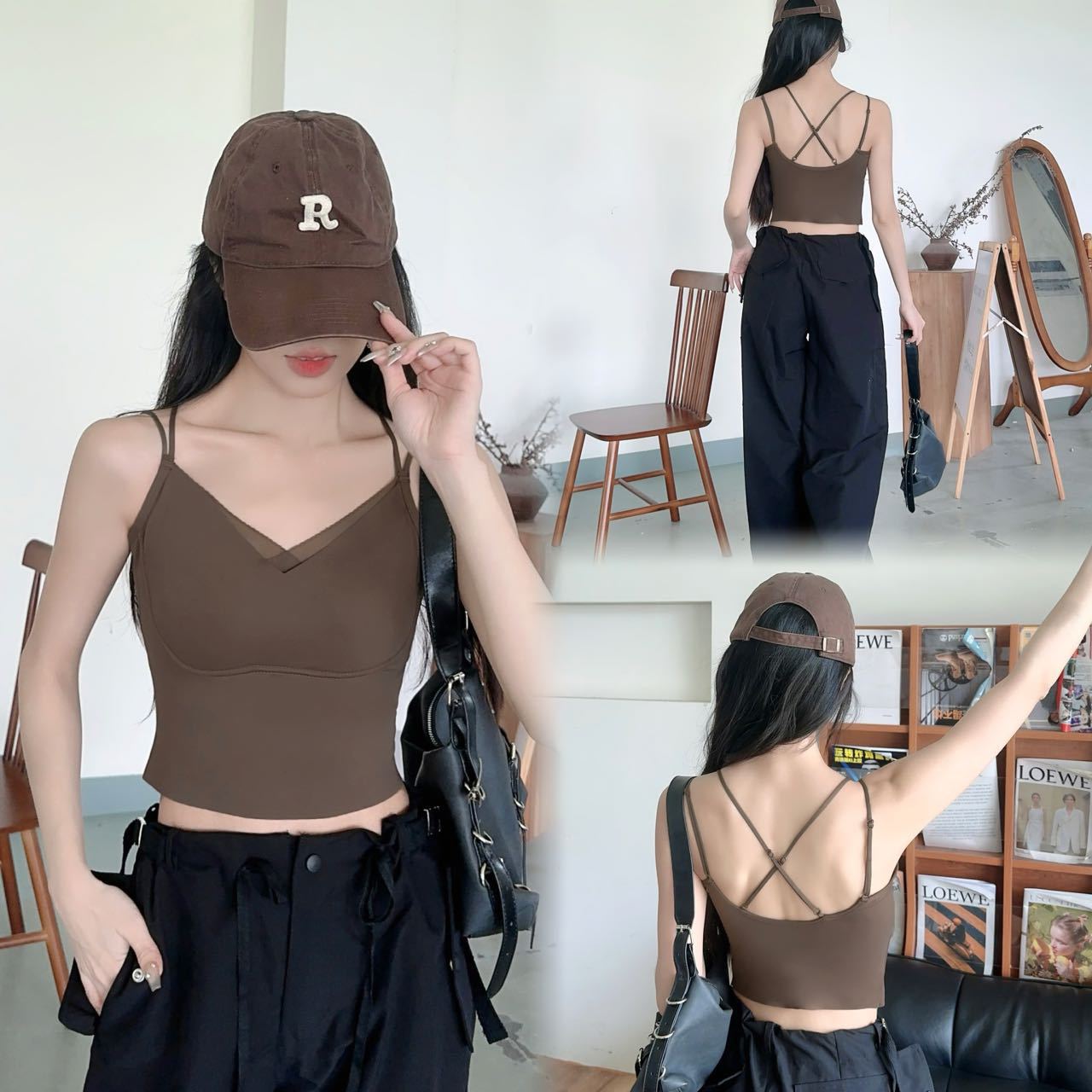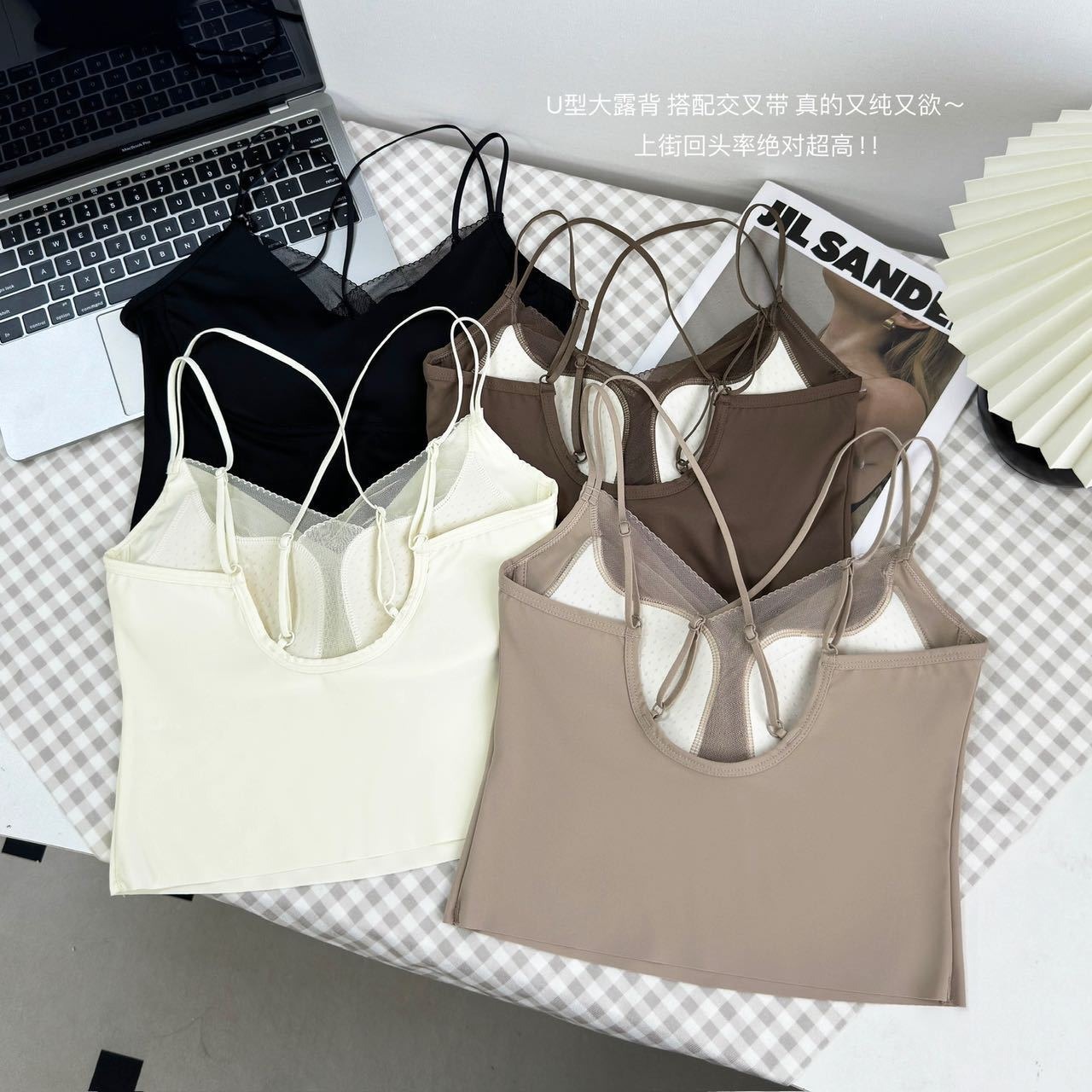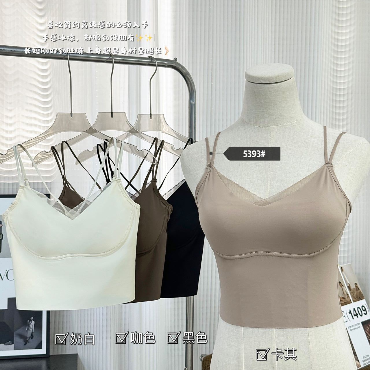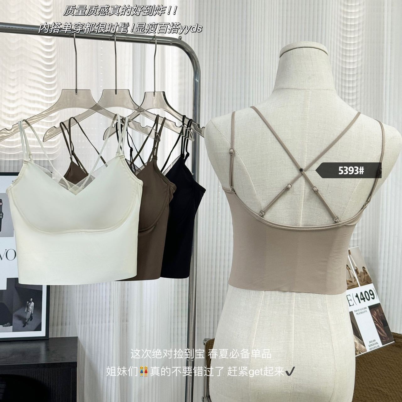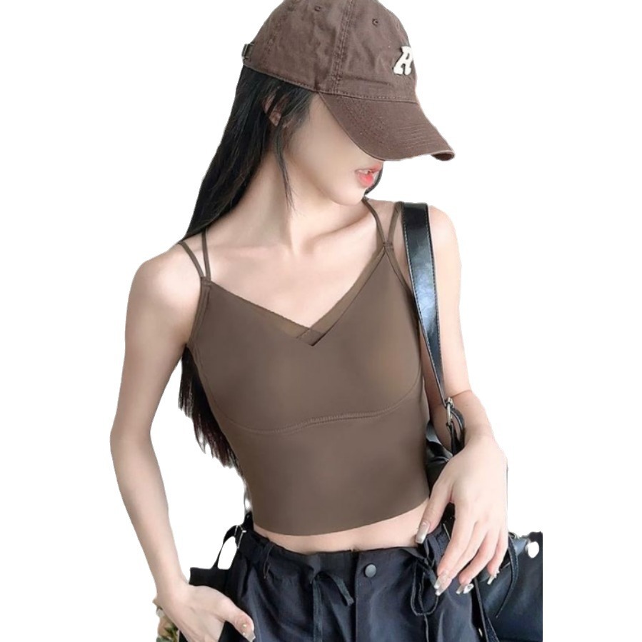 5393 Clothes Hanger Pack Ice Silk Seamless Mesh V-Neck Fake Two-piece Fixed Cup Cross Beautiful Back Wrapped Chest Camisole Vest for Women