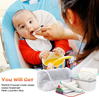 FAMOPLY 54 Pack Flannel Cloth Baby Wipes,reusable natural skin-friendly baby wipes, soft body face wipes, essential for cloth diapers 8x8inch