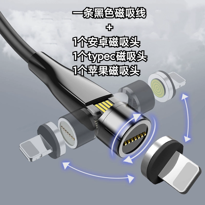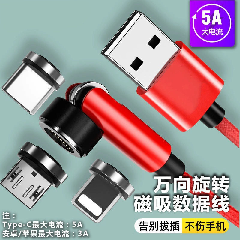 540-degree magnetic data cable Android Apple VIVO Xiaomi OPPO Huawei mobile phone universal super flash charging charging cable 360° magnet charging cable Honor Redmi OnePlus fully compatible 40W