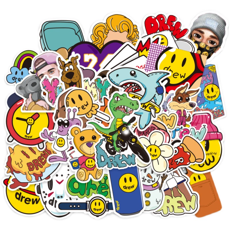 | nameOriginal | 56 pieces of Justin Bieber stickers, smiley faces, Drewhouse stickers, suitcase luggage, Ouyang Nana stickers |