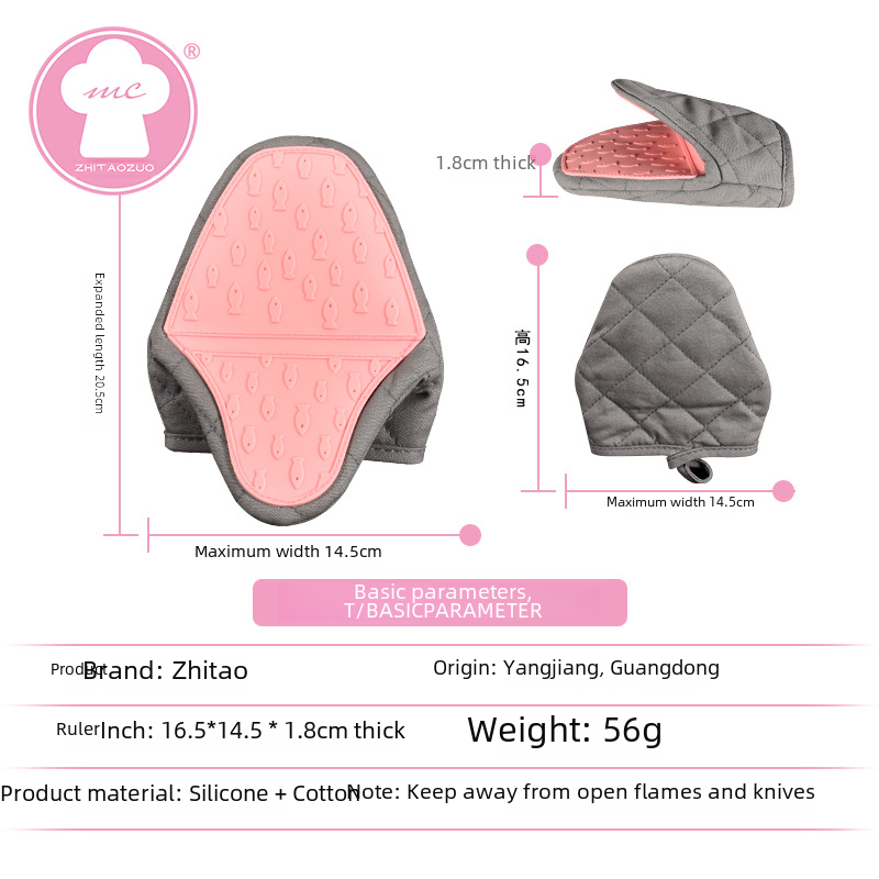 | nameOriginal | 56g fish-shaped semi-silicone cloth hand grip gloves microwave oven silicone cotton double-layer baking oven heat insulation gloves |