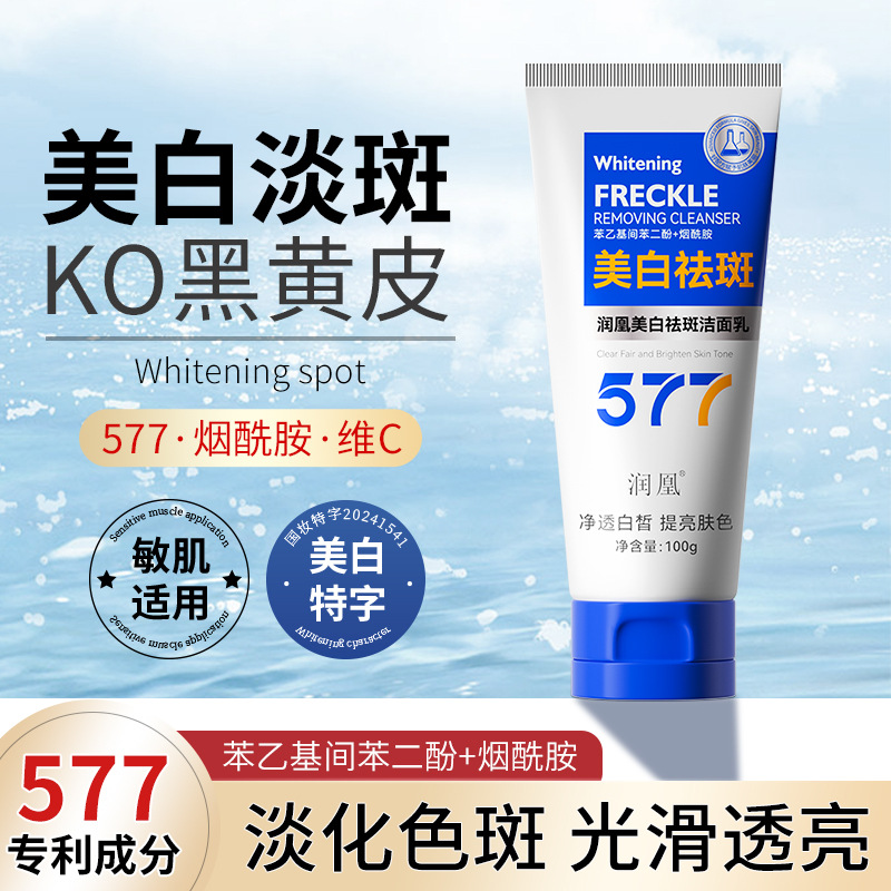 577 facial cleanser moisturizing burn whitening freckle cleanser brightens skin tone fade melanin clear pores for men and women