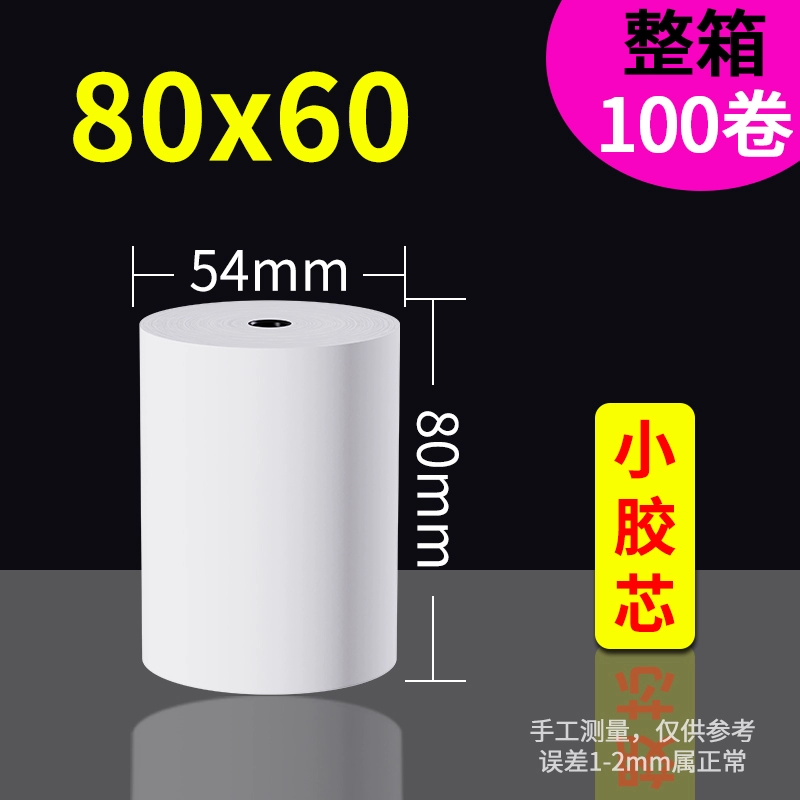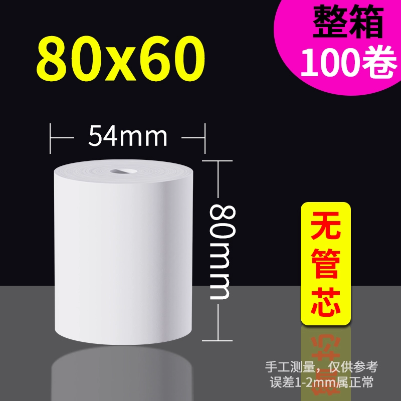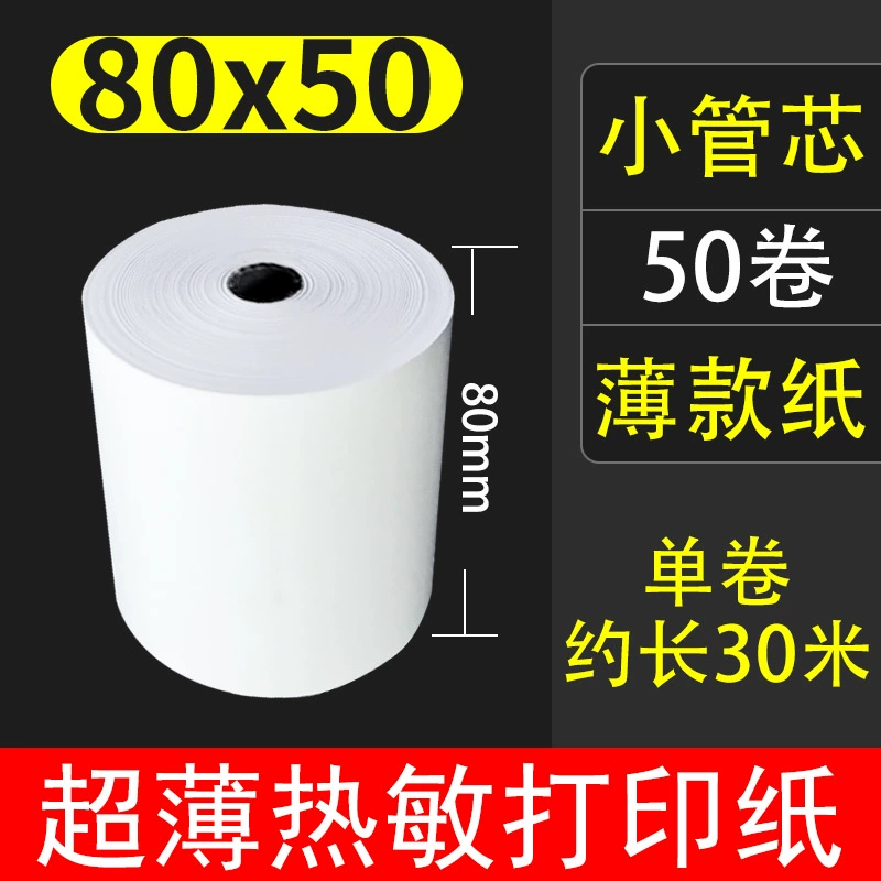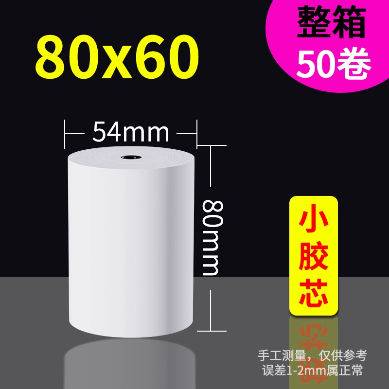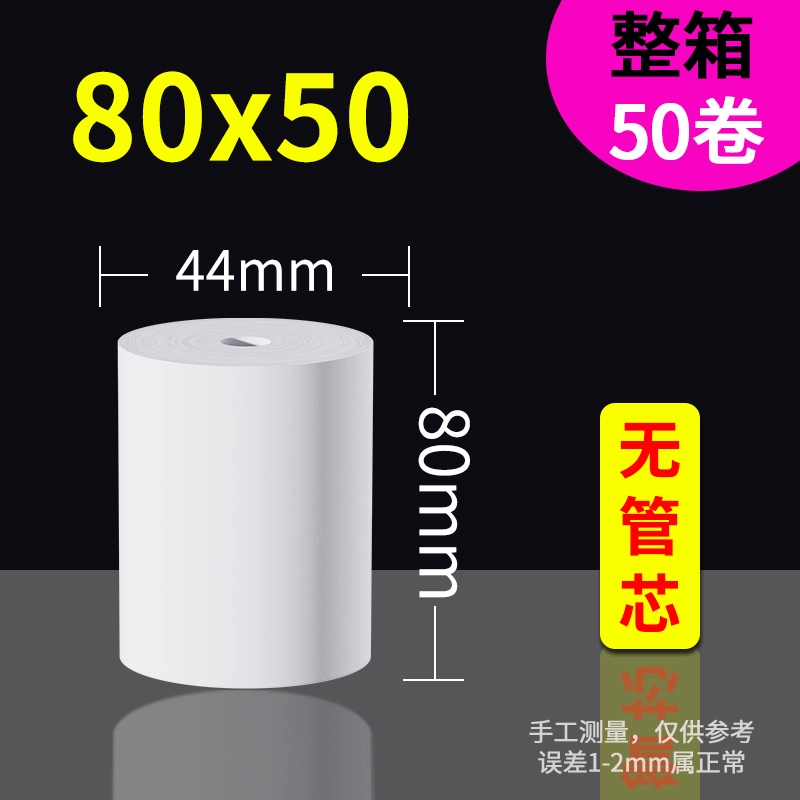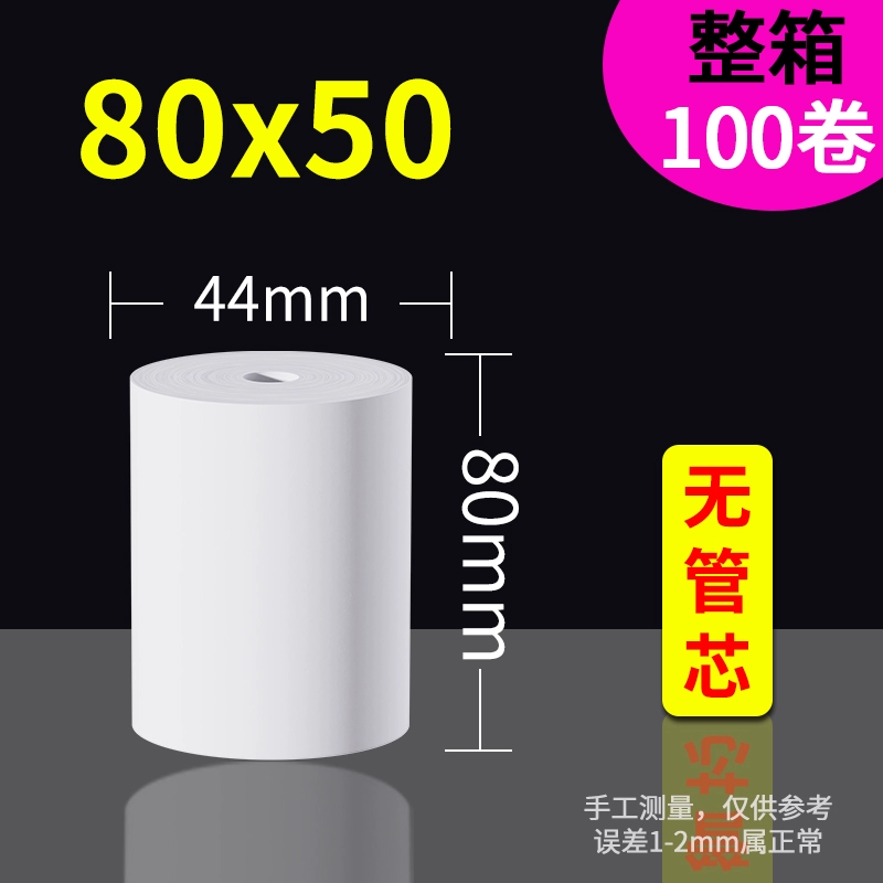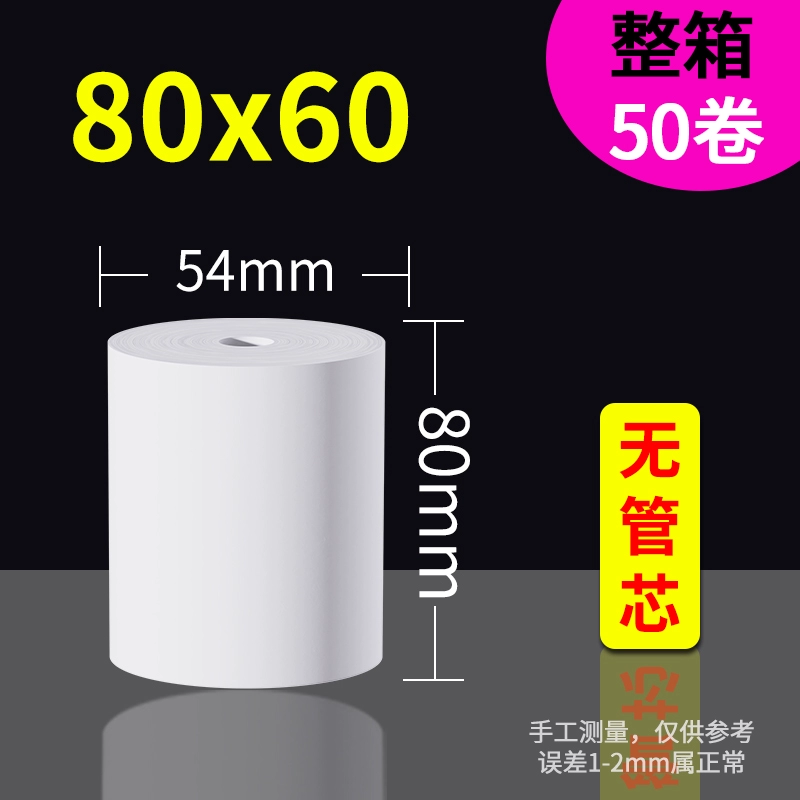 | nameOriginal | 57×50 small core thermal cashier paper thin tubeless printing paper 58mm Meituan takeout thermal paper 80×60 printing receipt paper restaurant back kitchen 80x80mm cash register roll paper whole box |