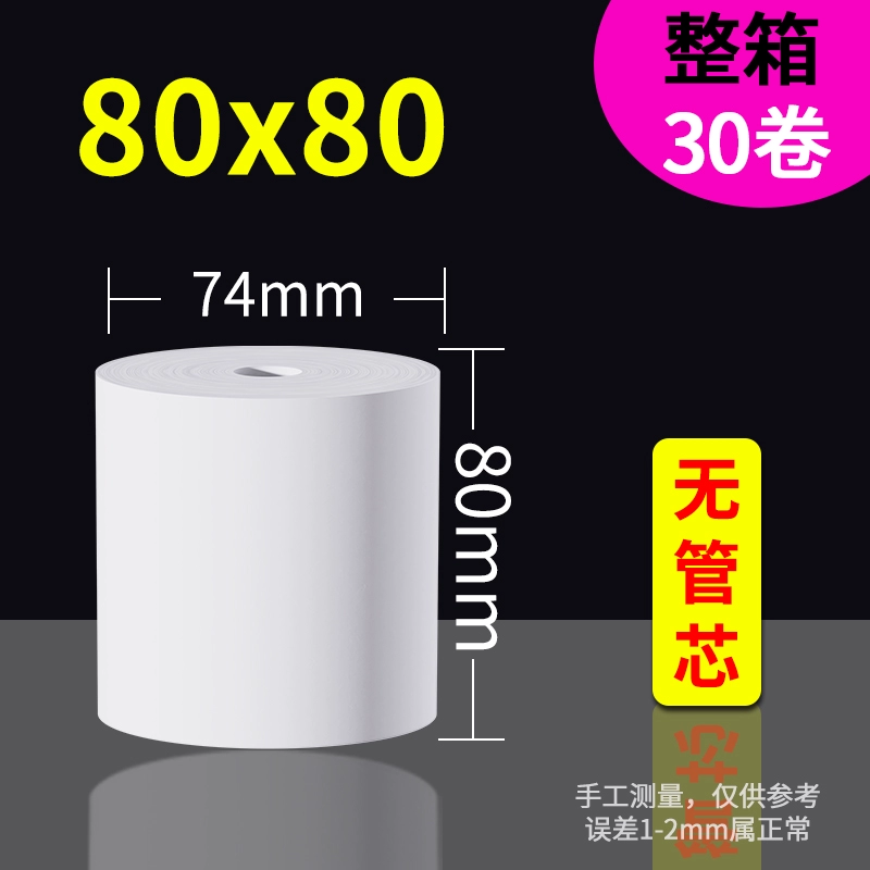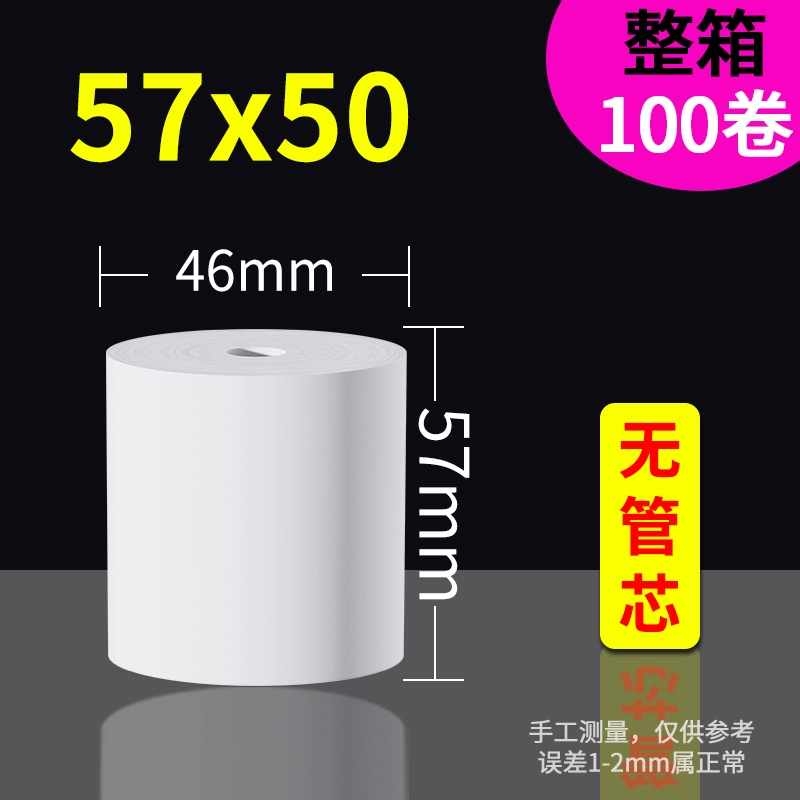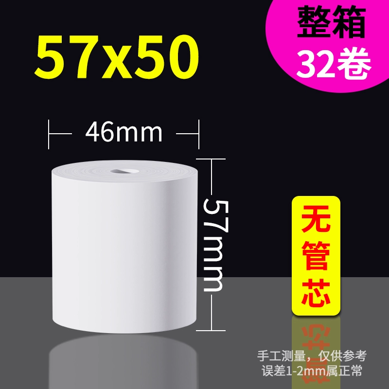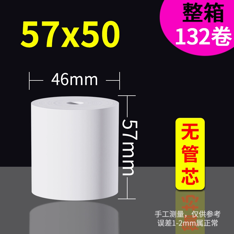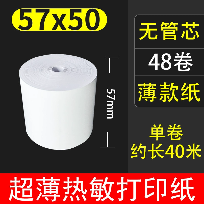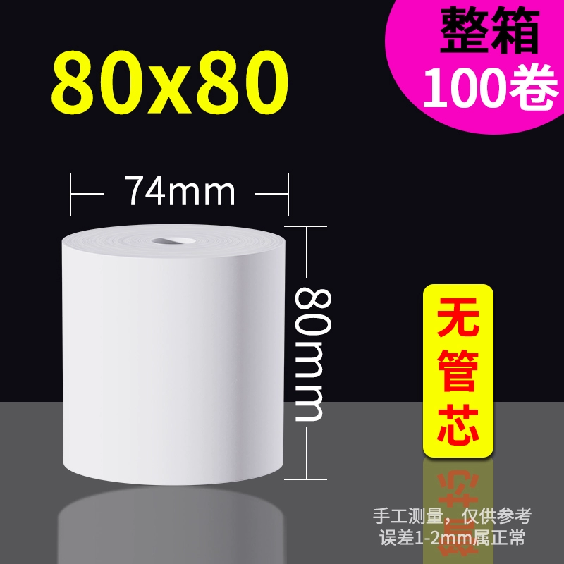 | nameOriginal | 57×50 small core thermal cashier paper thin tubeless printing paper 58mm Meituan takeout thermal paper 80×60 printing receipt paper restaurant back kitchen 80x80mm cash register roll paper whole box |