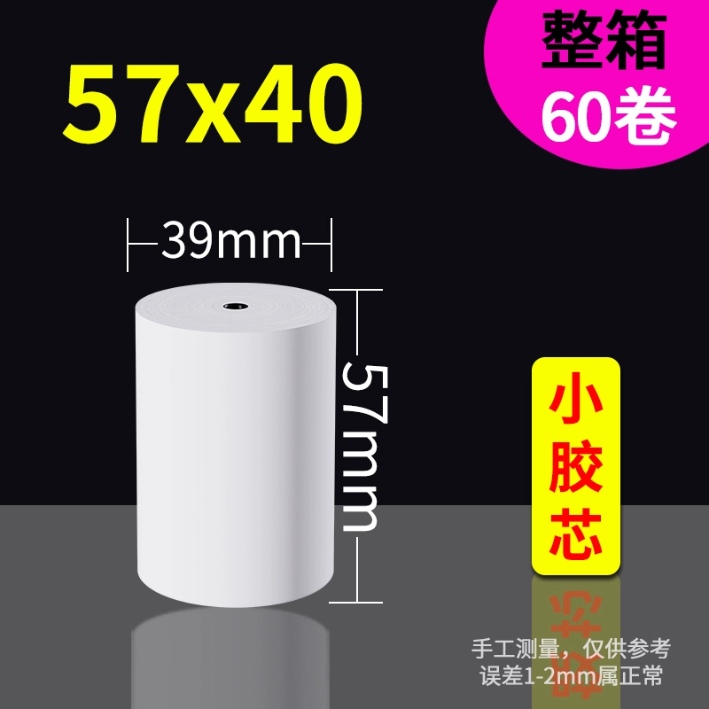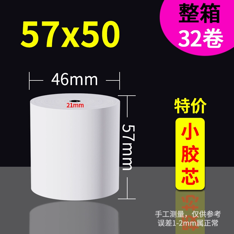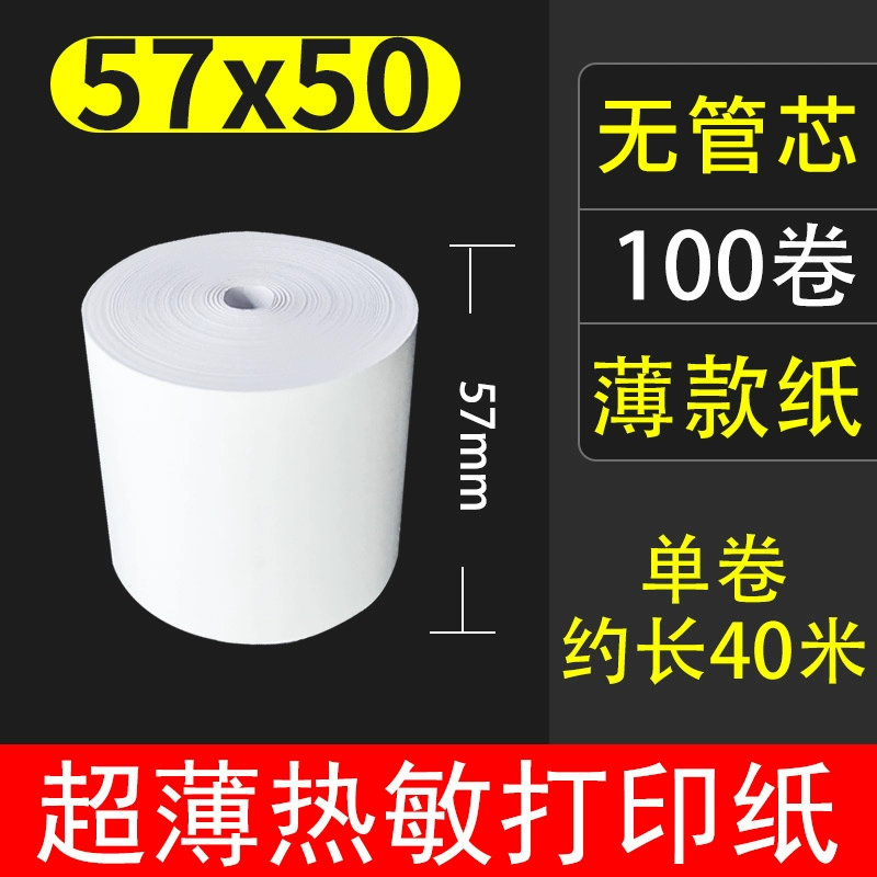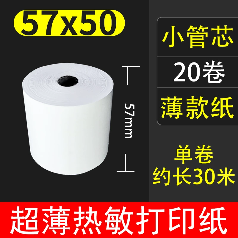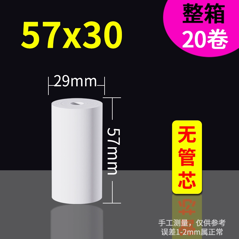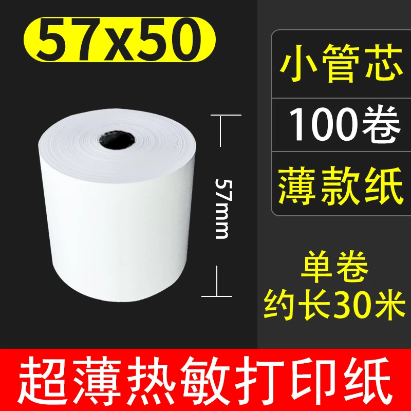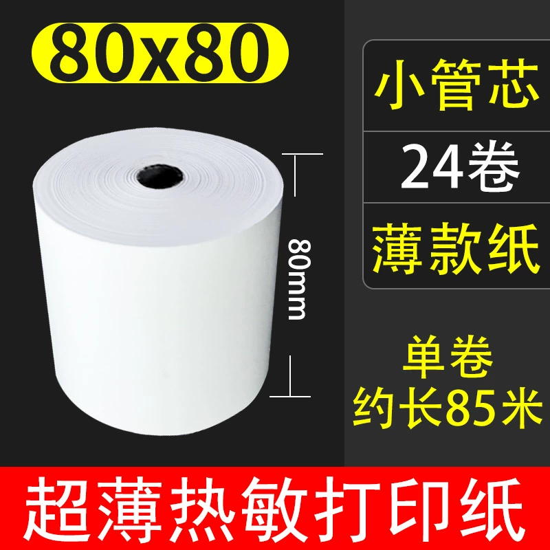 | nameOriginal | 57×50 small core thermal cashier paper thin tubeless printing paper 58mm Meituan takeout thermal paper 80×60 printing receipt paper restaurant back kitchen 80x80mm cash register roll paper whole box |