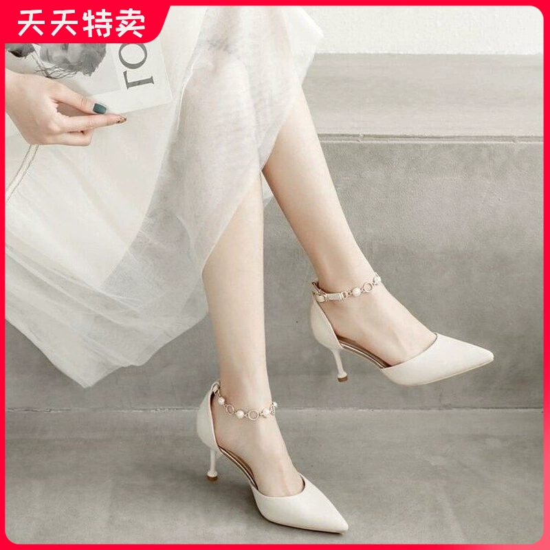 | nameOriginal | 5cm white buckle spring and summer chain high heels |