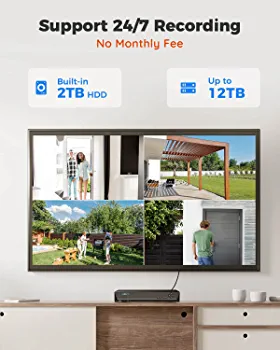 This system comes with a pre-installed 2TB HDD, which can be expanded up to 12TB. You can also add up to 12MP Reolink PoE and WiFi cameras to the system.