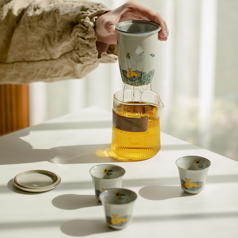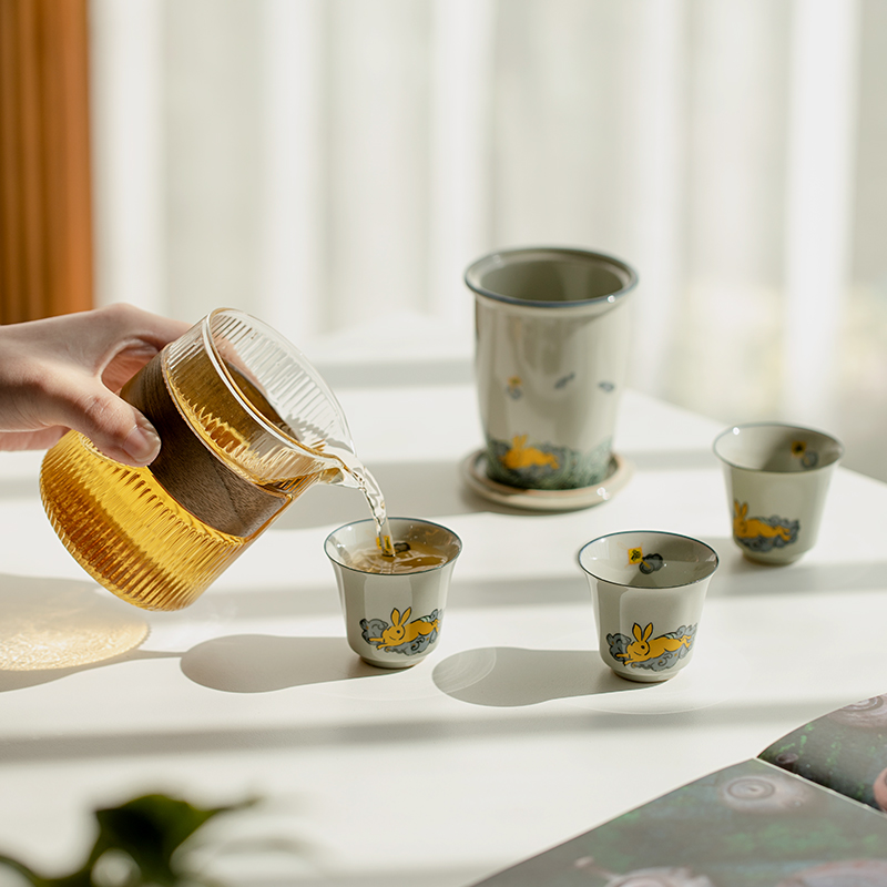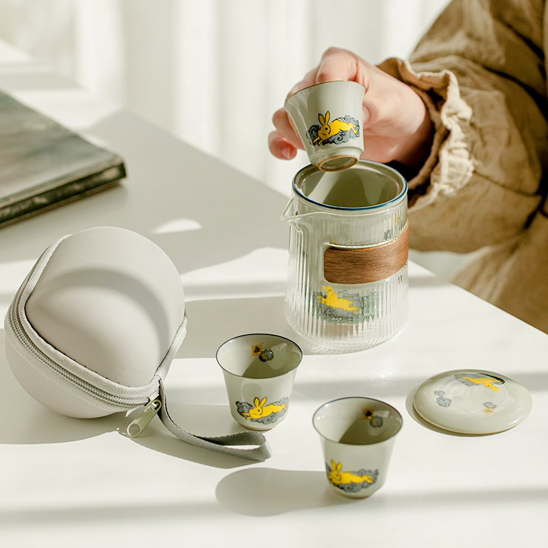 | nameOriginal | 5OH3 Golden Rabbit Annunciation Travel Tea Set Outdoor Portable Express Cup Teapot Ceramic Tea Cup Portable Pot |