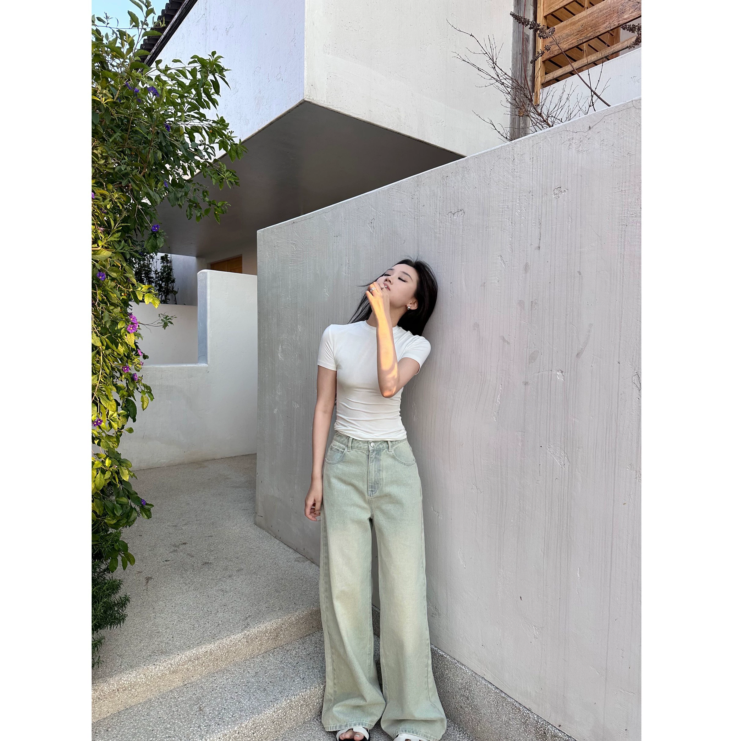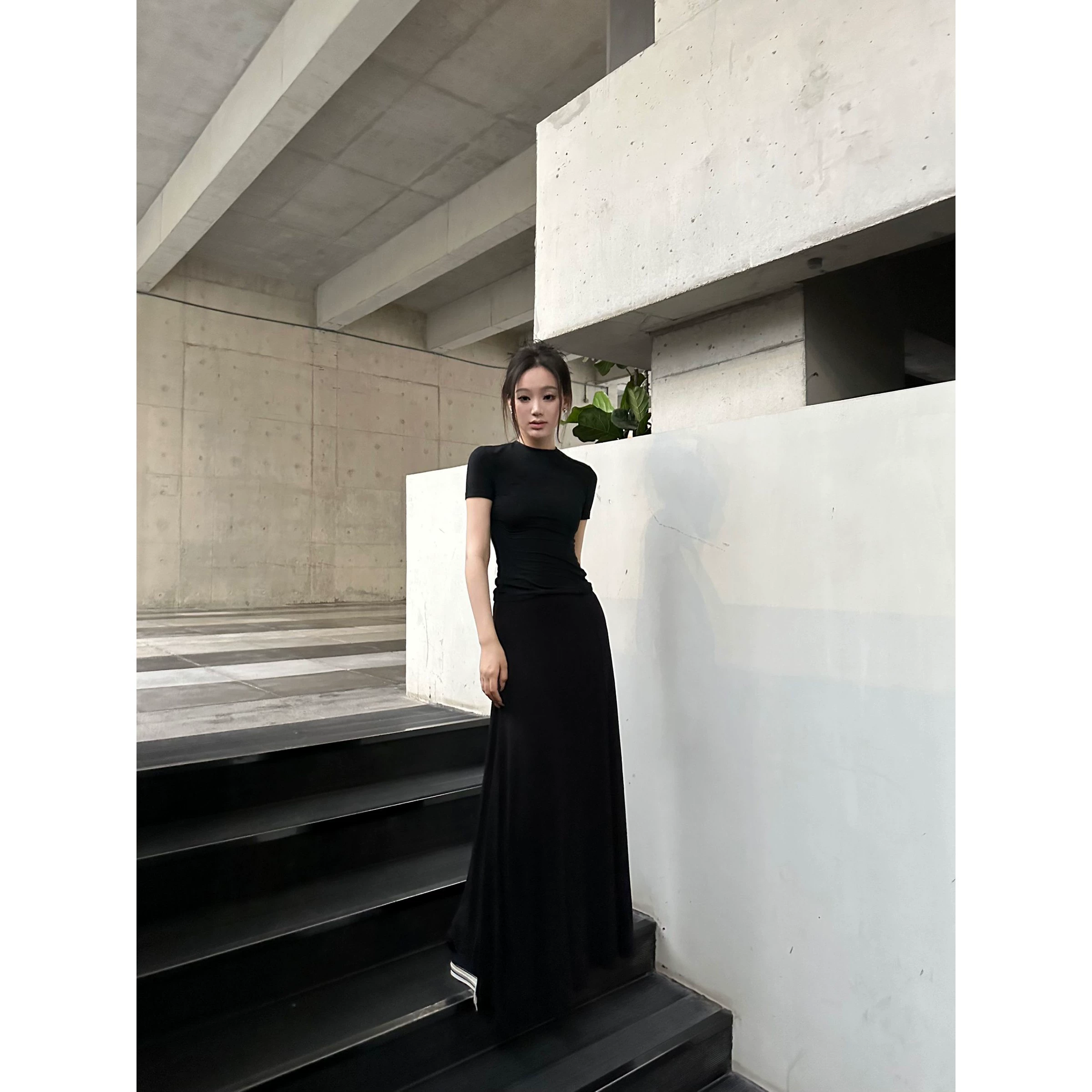 | nameOriginal | 5werkwen two-color soft T round neck, front shoulder, basic comfort, soft waxy elastic slim fit, slimming and short inner wear |