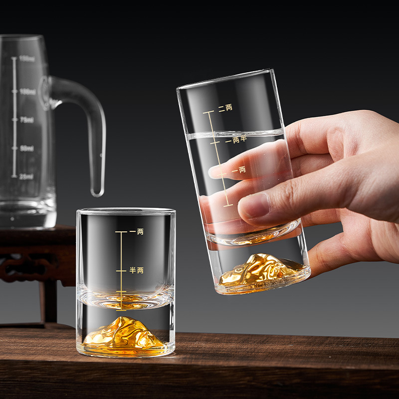| nameOriginal | 5YA1 wholesale Jinshan Erliang white wine glass suit gold-painted glass spirits glass household light luxury wine set with scale water |